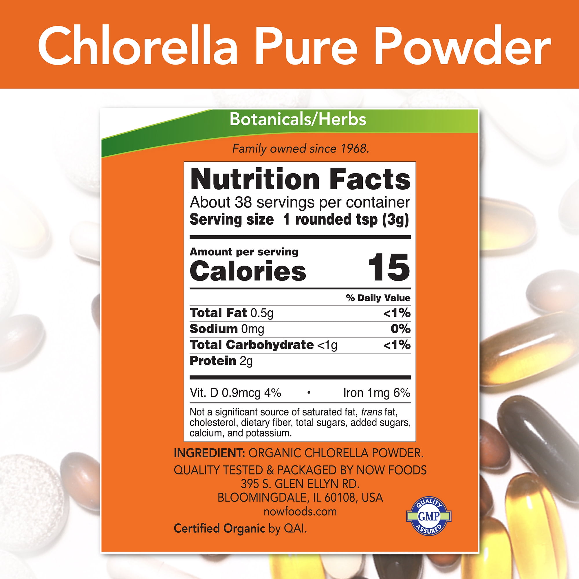 NOW Supplements, Organic Chlorella Powder with naturally occurring Chlorophyll, Beta-Carotene, mixed Carotenoids, Vitamin C, Iron and Protein, 4-Ounce