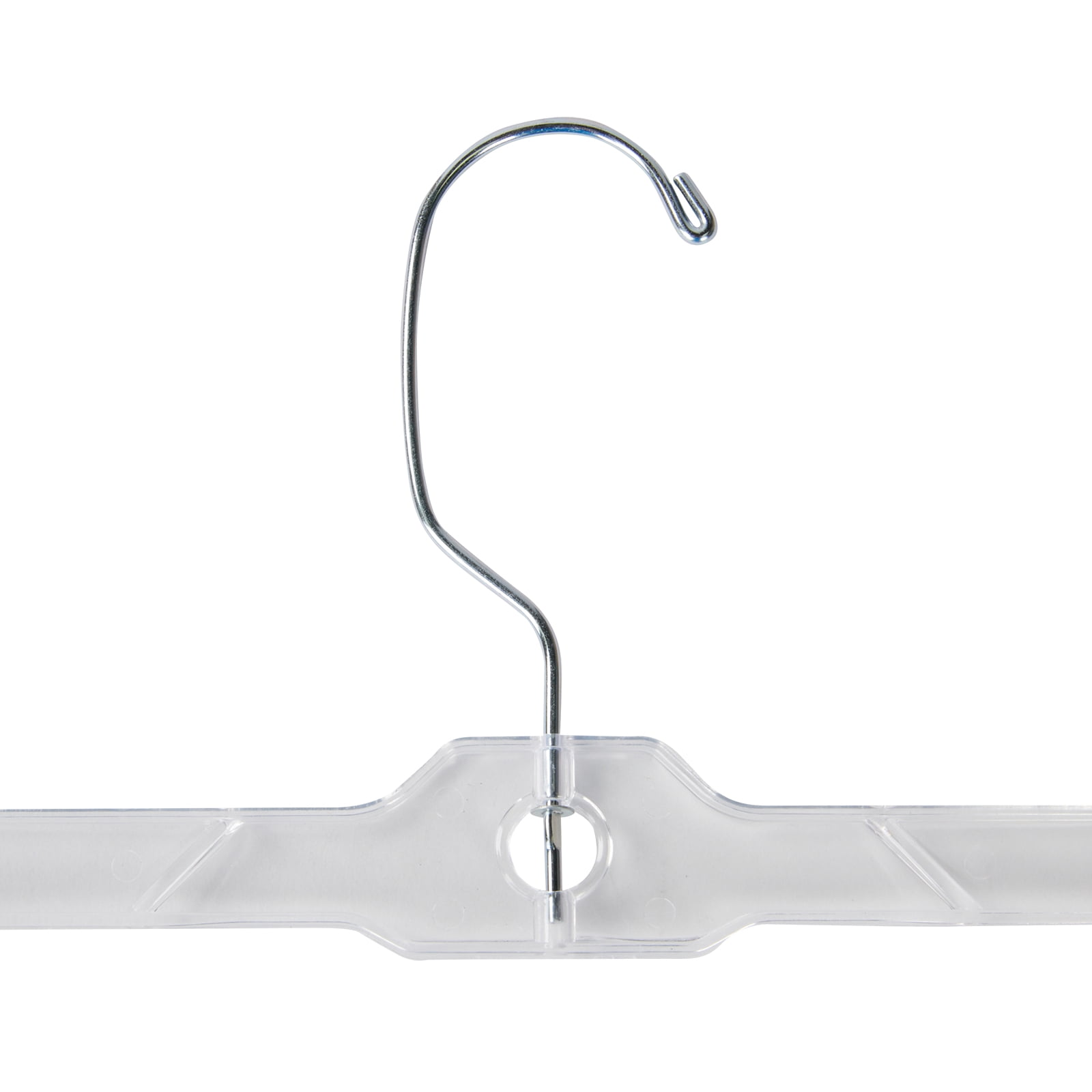 Use the Economy Plastic Skirt and Pant Hangers in Clear for an affordable alternative. These regular hangers have the same great design, shape, and dimensions of our premium hangers at a more affordable price! Featuring anchored chrome swivel hooks, hang bars, and padded metal clips, these hangers are a great addition to your retail displays. The 14" regular skirt and pant hanger will hold up to 6lbs which makes them perfect for lightweight clothing and everyday use. Sold in cases of 20.Durable – The high-density plastic makes these dress hangers light weight but also sturdy and durable. A great value for your closet organization.