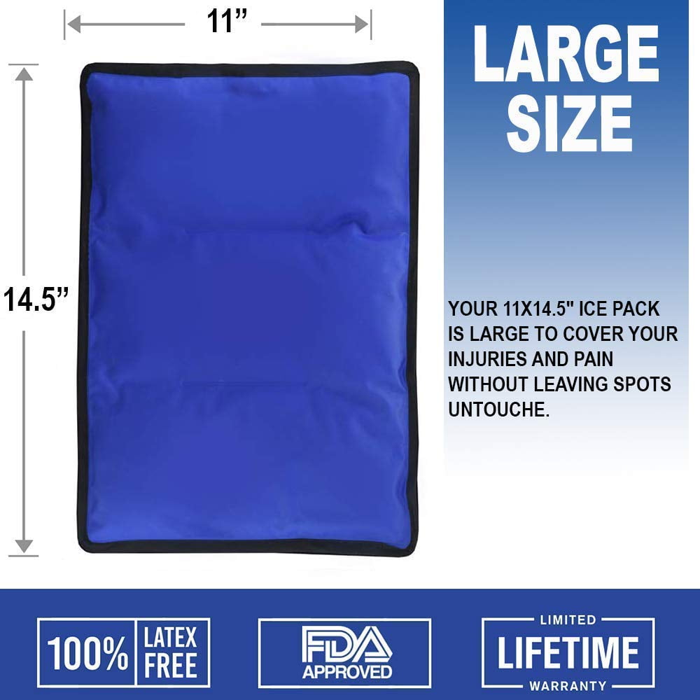 - DURABLE CONSTRUCTION – Our large ice pack wrap is made to last with high-quality binding that prevents leaks or tears, and a non-abrasive exterior that’s gentle on the skin. The sectional construction ensures the gel evenly distributes for better, easier application.