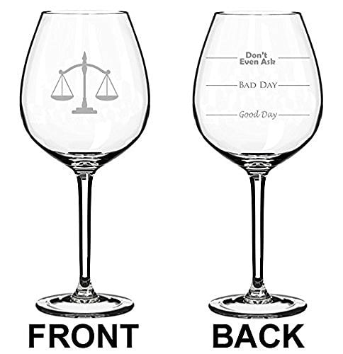20 oz Jumbo Wine Glass Funny Two Sided Good Day Bad Day Don’t Even Ask Scales of Justice Paralegal Law Lawyer Attorney,MIP20oz Wine Glass Measures 9" H 2.5" D. Real Glass.