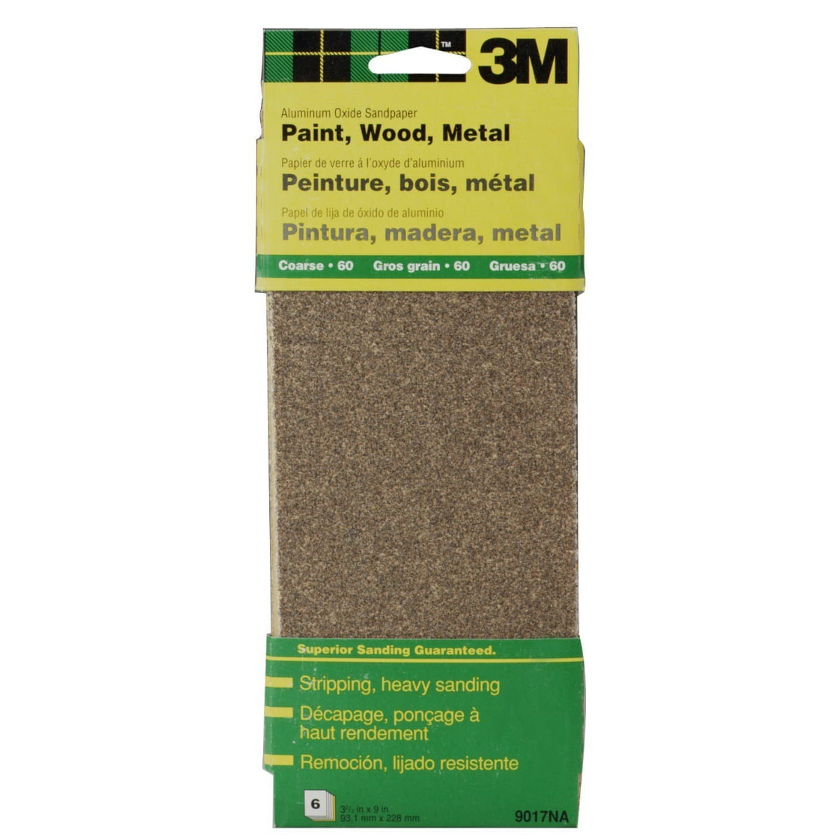 3M 9017 Aluminum Oxide Sandpaper Sheet, 3-2/3" x 9", Coarse 60 Grit, 6-Pack
