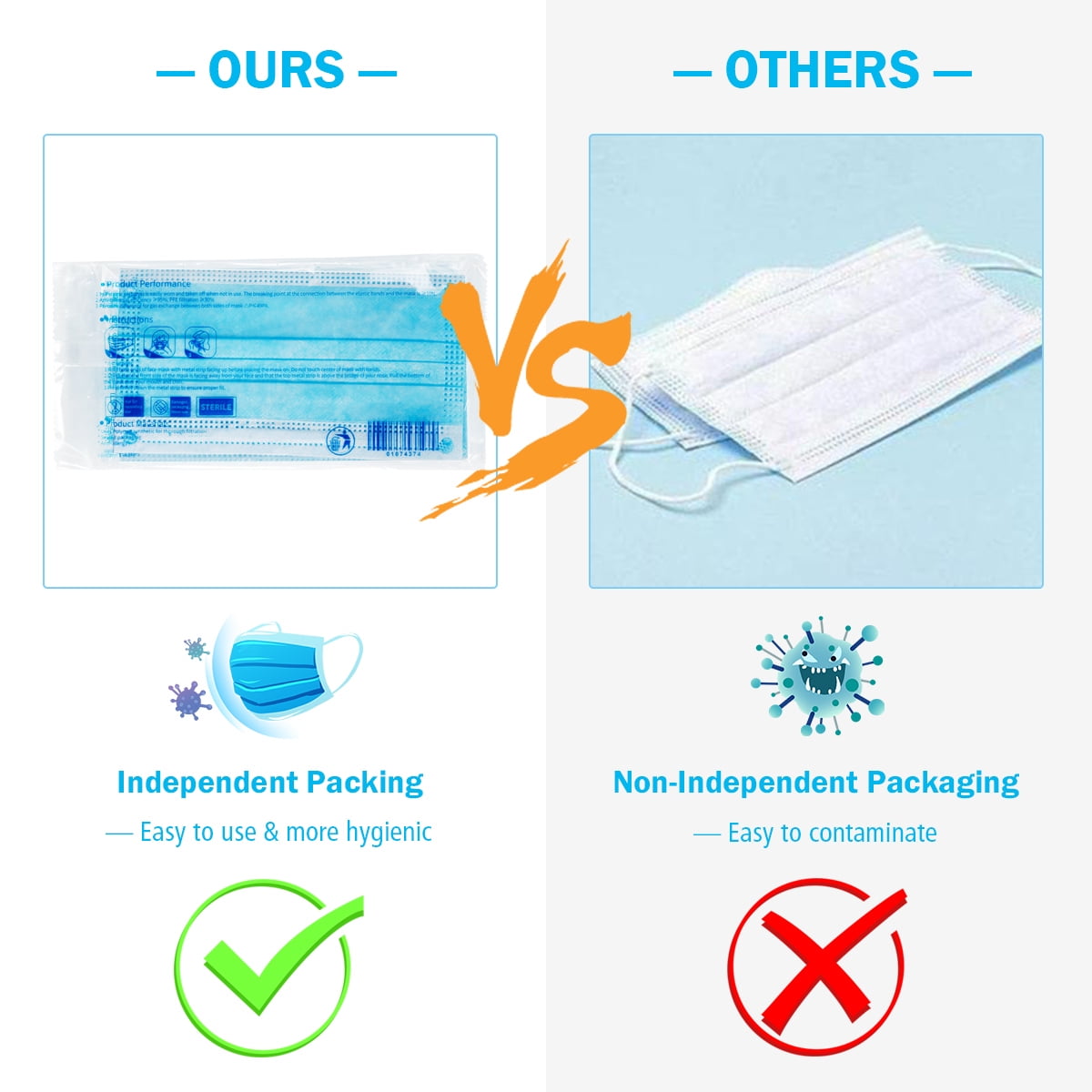 Choose the correct protective mask so that no bacteria can enter your mouth or nose. Made of high-quality non-woven material, our disposable masks are moisture-proof, skin-friendly, comfortable and breathable. 3 high-efficiency filter layers can block bacteria and pollutants in the air to ensure that your respiratory tract is not infected. Inside, there are soft bridge strips that you can easily adjust to fit your face. In addition, ear straps are made of soft and elastic rubber bands and can effectively eliminate the pressure on the ear, so you won’t feel uncomfortable after long time use.