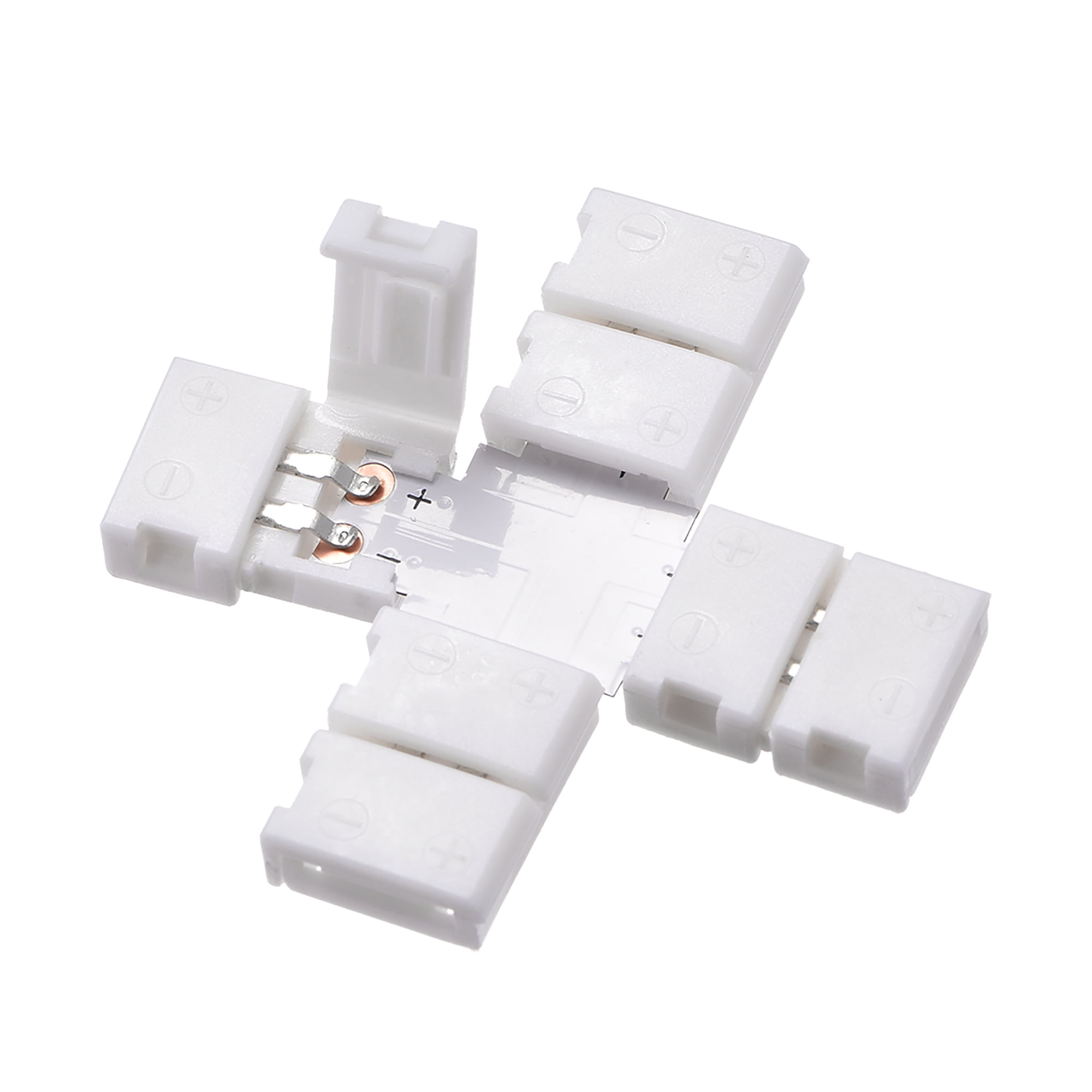 8mm 2P Cross Shape LED Strip Connector for Single Color 3528 Lights 15Pcs