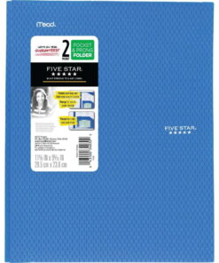 LASTS ALL YEAR. GUARANTEED! Make sure you have all the important papers you need for class with this Five Star Active Pocket and Prong Paper Folder. The active-inspired folder comes in bright colors and features a multi-textured look. The durable laminated paper cover is water-resistant to help protect your important papers. Loose papers can be neatly tucked into the two horizontal pockets, while three prongs securely hold your 3-hole punched papers inside.Active Pocket & Prong Portfolio Purple – Five Star