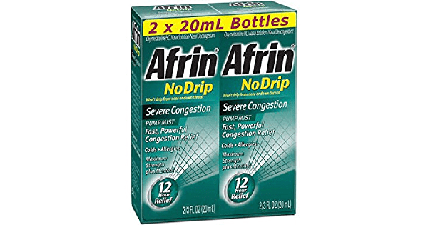 Get severe congestion relief in seconds with Afrin® No Drip Severe Congestion Nasal Decongestant Pump Mist. The maximum strength severe congestion medicine and soothing menthol in Afrin provides up to 12 hours of relief to get you through the day or night. The no-drip formula stays where you spray it and does not drip down your throat or from your nose. Afrin No Drip Severe Congestion Nasal Decongestant Pump Mist is the #1 doctor and pharmacist recommended brand.
