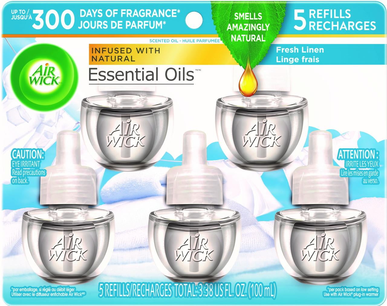 Air Wick plug in Scented Oil Refill, Fresh Linen 5 ct, Air Freshener, Essential Oils