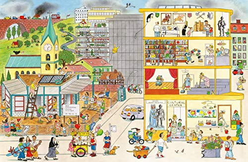 Kids will enjoy hours of fun exploring these vibrantly detailed drawings that celebrate the joys of summer in a busy town.