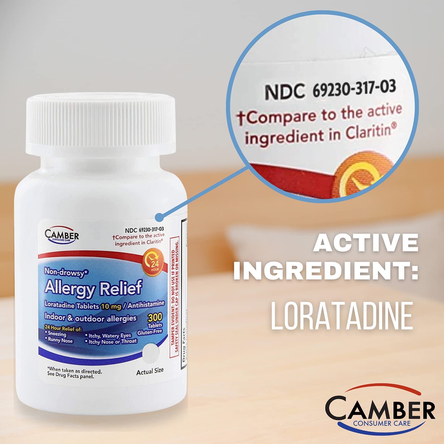 - Camber Consumer Care Allergy Relief | Loratadine 10mg Antihistamine | 300 Count Tablets