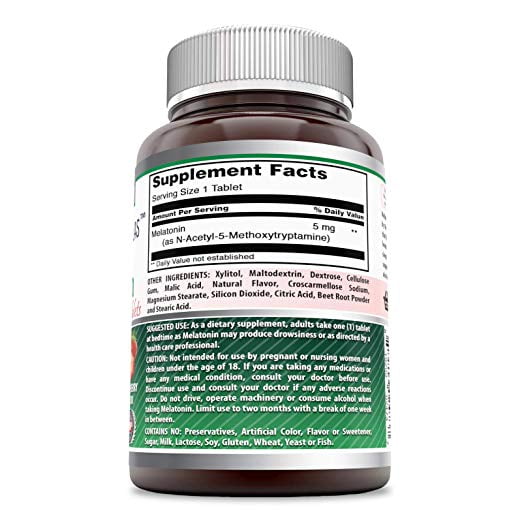 Amazing Formulas Melatonin Quick Dissolve Strawberry – 5 Mg(250 Tablets) (Non-GMO) – Helps Fall Asleep Fast & Stays Asleep All Night – Helps Regulate Sleep Cycle – Calming & Relaxing Effect