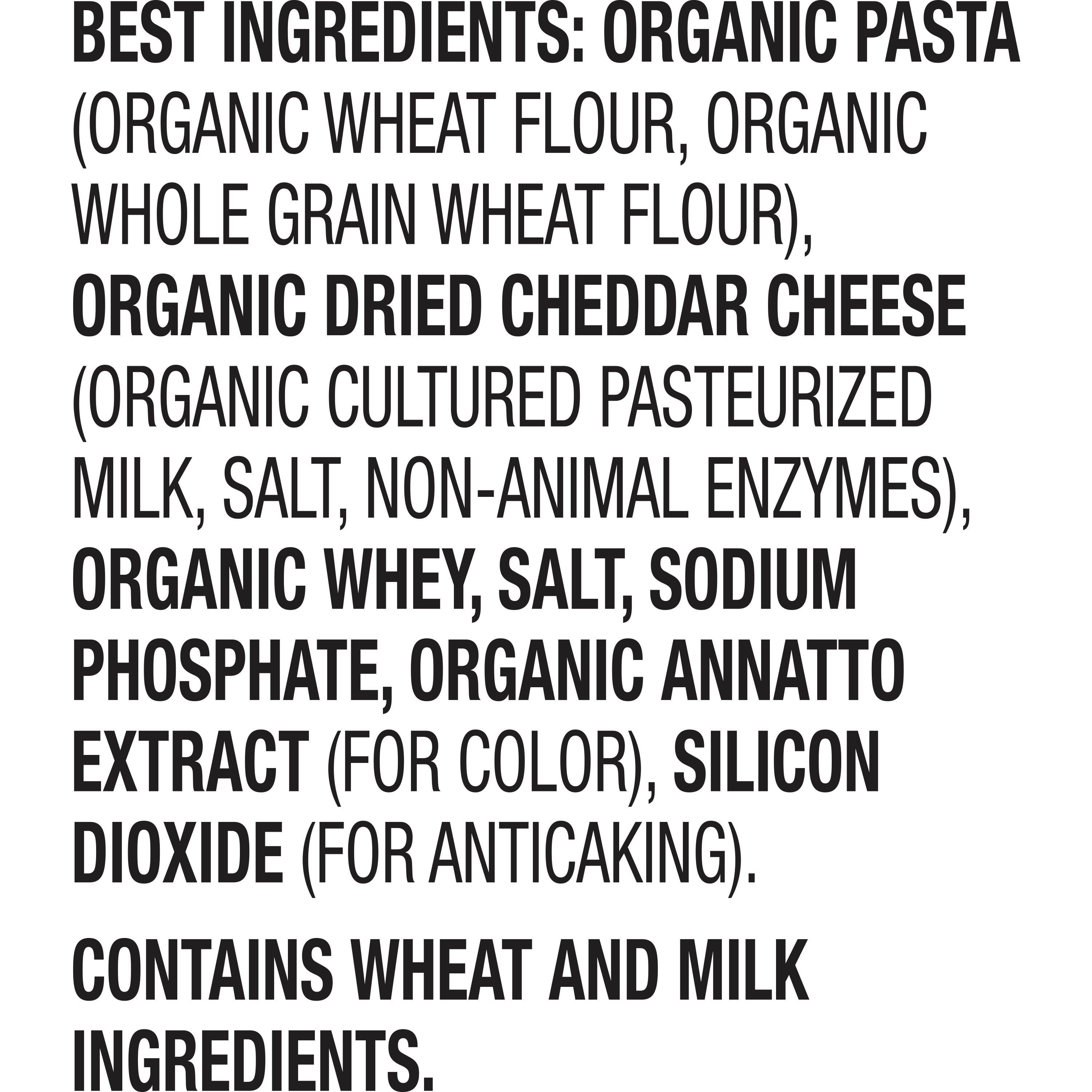- MAC & CHEESE: Organic cheese made from cows raised without antibiotics or synthetic hormones.