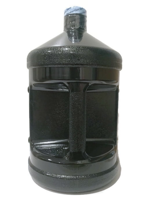 AquaNation 1 Gallon Polycarbonate Reusable Daily 8 Plastic Drinking Water Bottle Jug Container with Holder Drinking Canteen (Solid Black)
