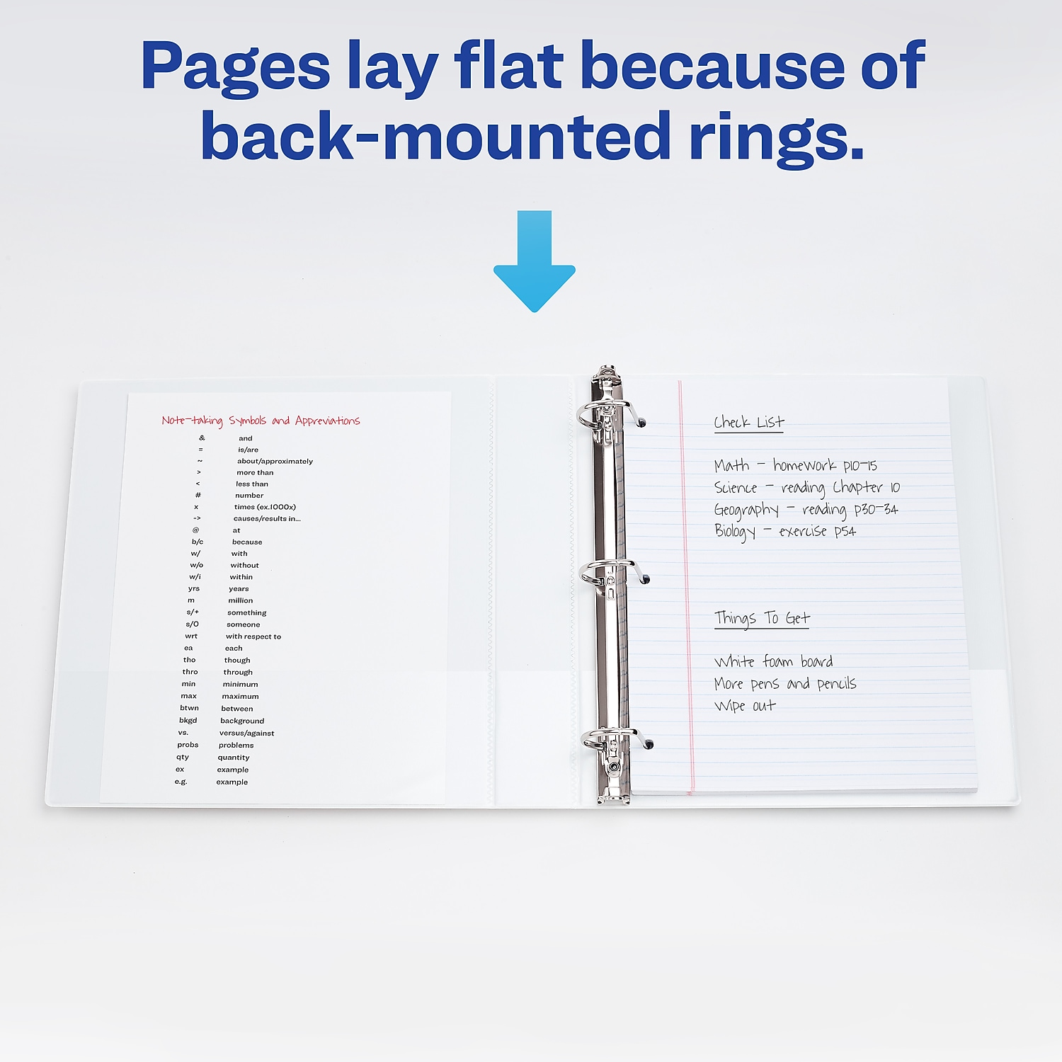 Store reports and forms securely in this Avery DuraHinge white 3-inch slant-ring 600-sheet durable view binder.Designed with toughness and durability in mind, the Avery Durable View 3 inch binder stands strong where many basic binders fall apart. Its sturdy exterior features a tear-resistant spine (DuraHinge) and more flexible, split-resistant edges (DuraEdge). Durable binders are also fully adhered with a deep-weave polypropylene cover that is resistant to bubbling, surface wrinkles, and is tear-resistant. The interior of this classic black binder is just as impressive as its exterior. With back-mounted slant rings, your pages will never curl again. Pages lay flat and are easy to turn, while the cover opens and closes without pulling on your papers. Enjoy extra organization and storage capabilities with two interior clear pockets made of nonstick material that won’t lift or transfer ink from your documents. Designed to be stronger and more durable than basic binders, this white binder features a tear-resistant spine (DuraHinge) and more flexible, split-resistant edges (DuraEdge). Great for frequent use. 3 inch 3 ring Durable View binder is great for use as a set to organize home paperwork, important documents, tax papers, classroom projects or to organize information for multiple meeting attendees. Free templates. Customize your view binder spine, front and back covers with hundreds of free binder templates and designs at avery.com/templates. Slant rings and two interior pockets. 3 ring binder holds up to 600 sheets. Plenty of room to hold lots of paper! Two interior pockets also help to keep loose papers secure. Durable view binder allows for customization on spine, front and back covers.Slant D-RingsWith the Avery Durable view binder, 3-inch slant-D rings hold up to 600 sheets of 8.5 x 11 inch paper. These innovative rings have a straight side that makes it simple to add and remove pages and a curved side that facilitates effortless page turning. Since the…