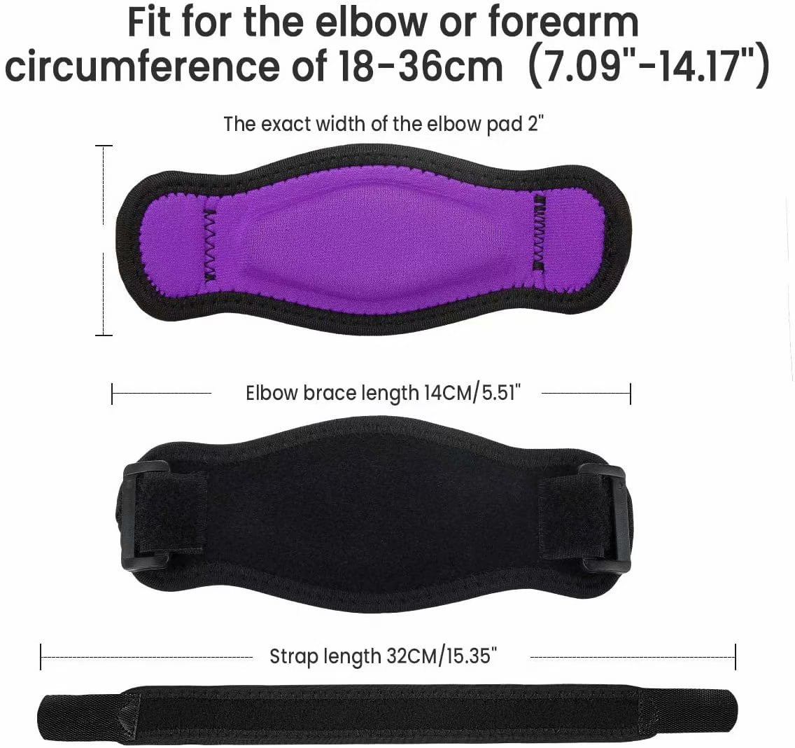 Flexible Size Adjustment: This tendonitis elbow band features two fully adjustable hook and loop straps so that it can be adjusted size and tightness freely. The tennis elbow brace fits for the forearm circumference of 7.09”-14.17”. Also, the elbow strap can be used for both men and women.