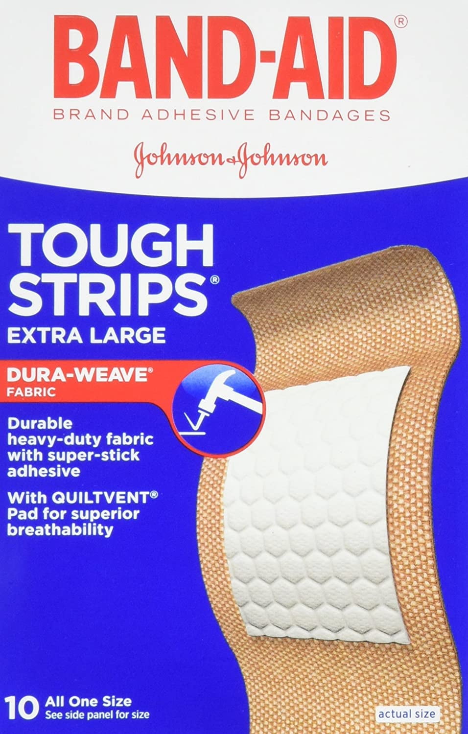 Band-Aid Brand Tough Strips Adhesive Bandage, Extra Large Size, 10 ct (Pack of 2)