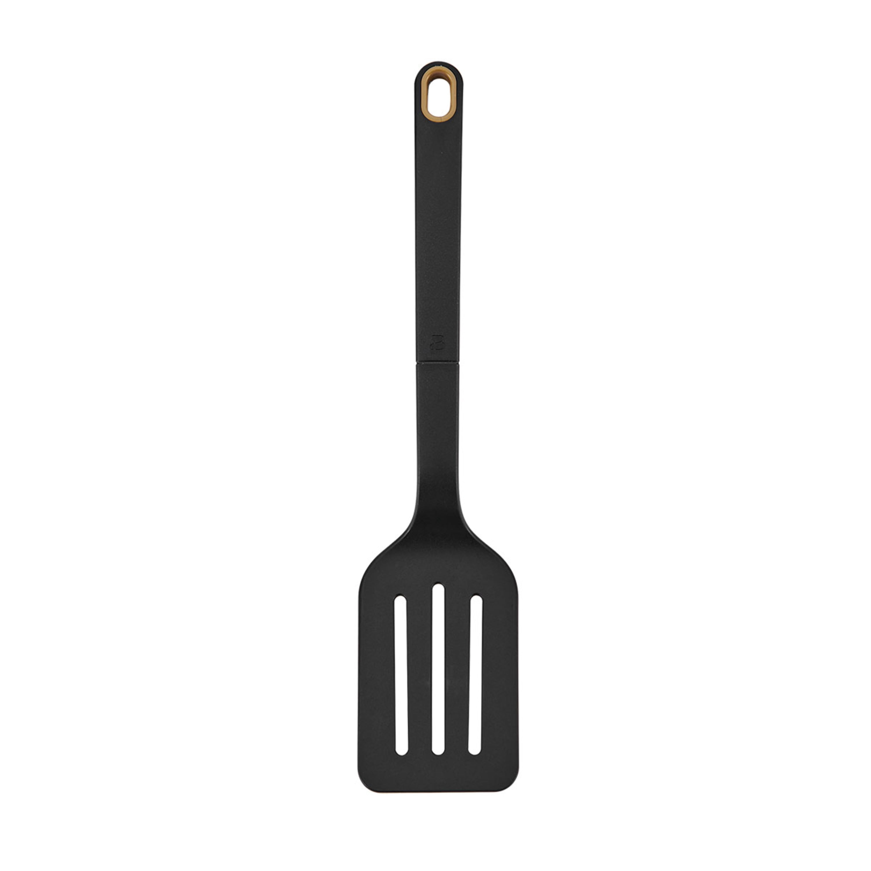 - Slotted turner strains liquids from food while flipping, stirring, sautéing, and serving