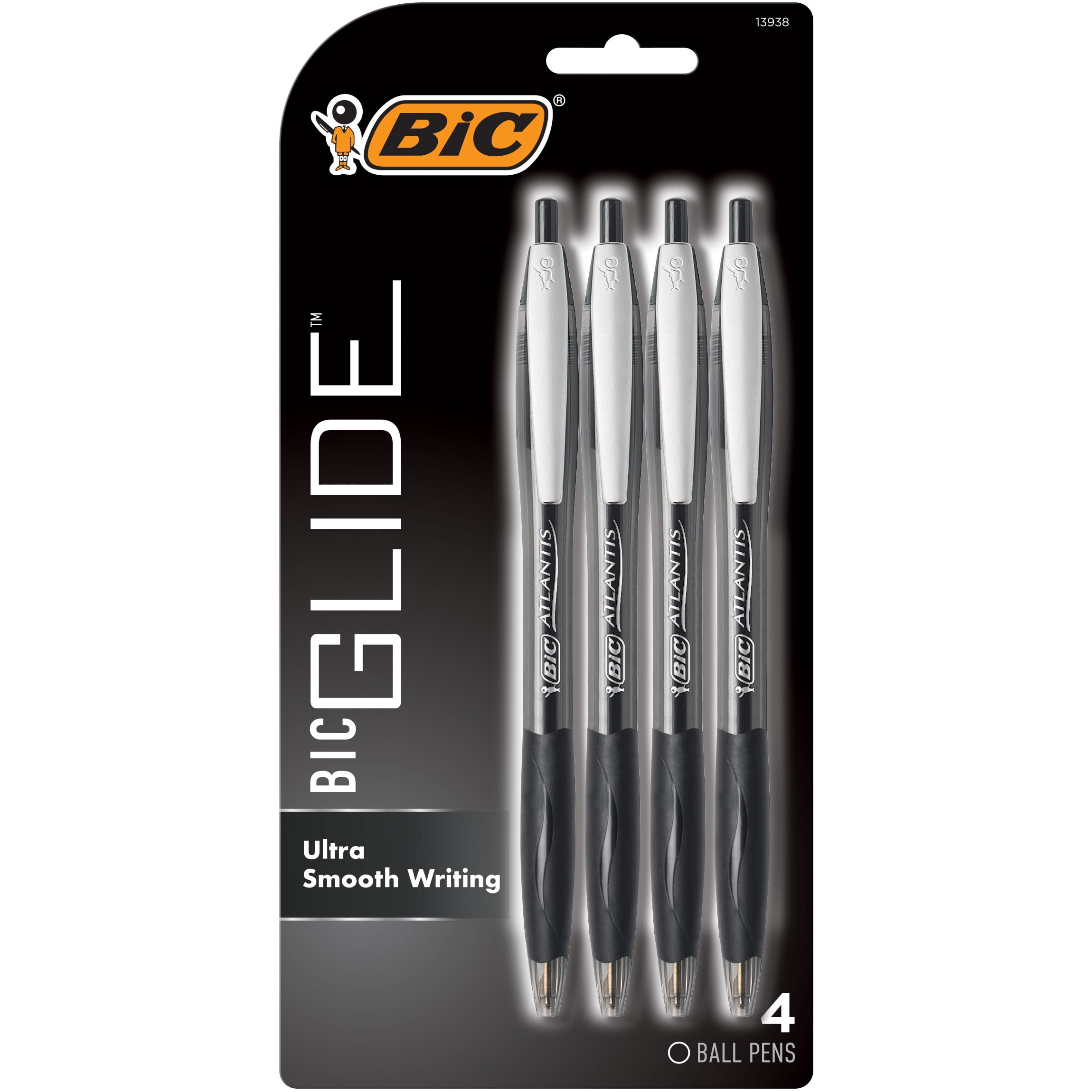 BIC Glide Original Retractable Ballpoint Pen, Assorted Ink Colors, Medium Point (1 mm), 4 Count Pack