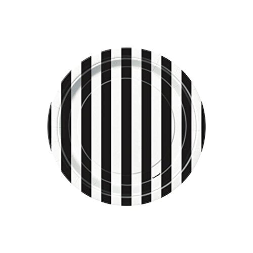 Black Striped Paper Dessert Plates, 7in, 8ct