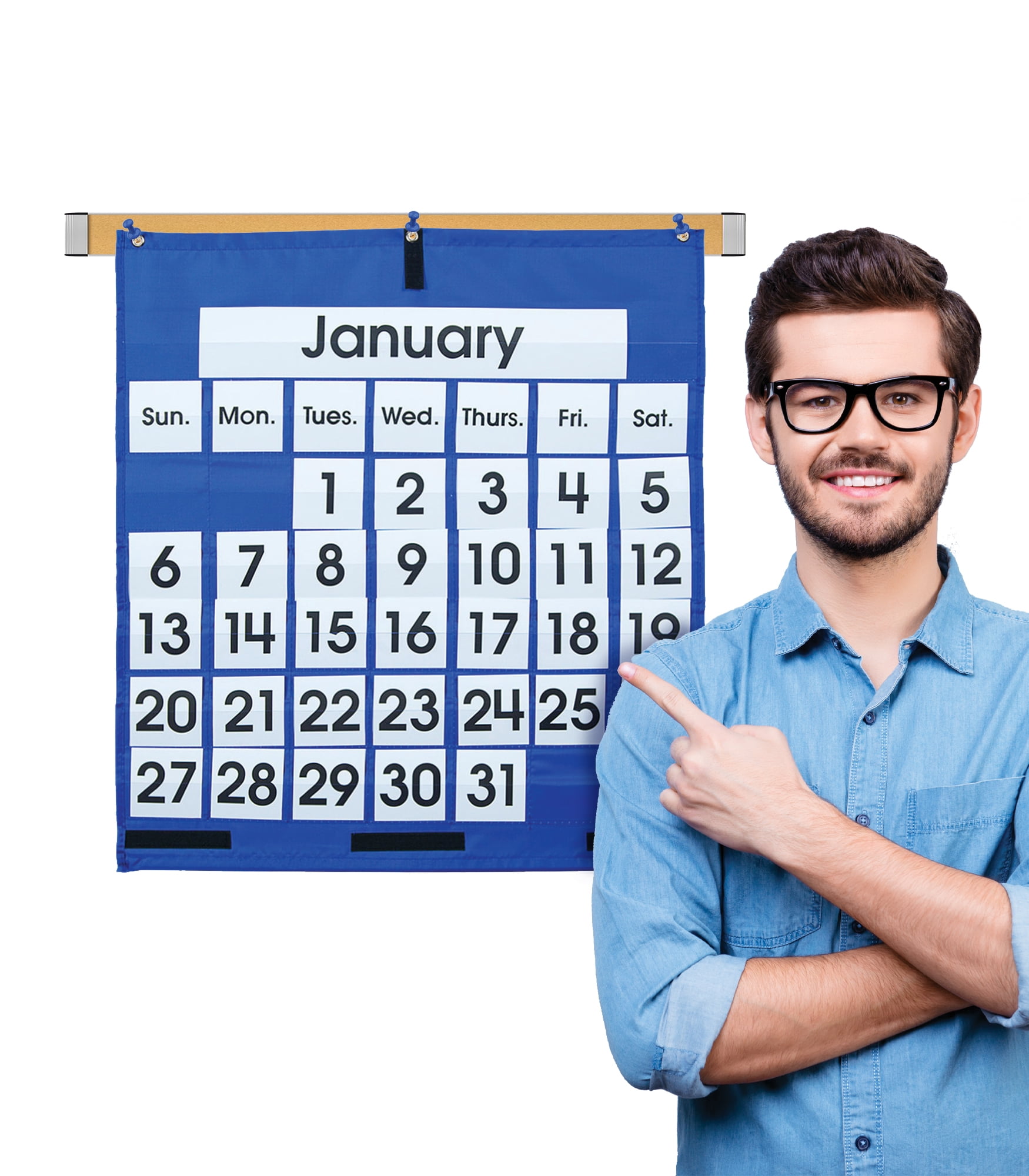 The Monthly Calendar Pocket Chart is the perfect companion to any early learning classroom. Its hands-on, interactive format makes it easy for students develop a better understanding of time and date relationships. It measures approx. 25” x 28.5” and features: