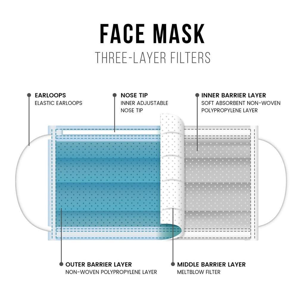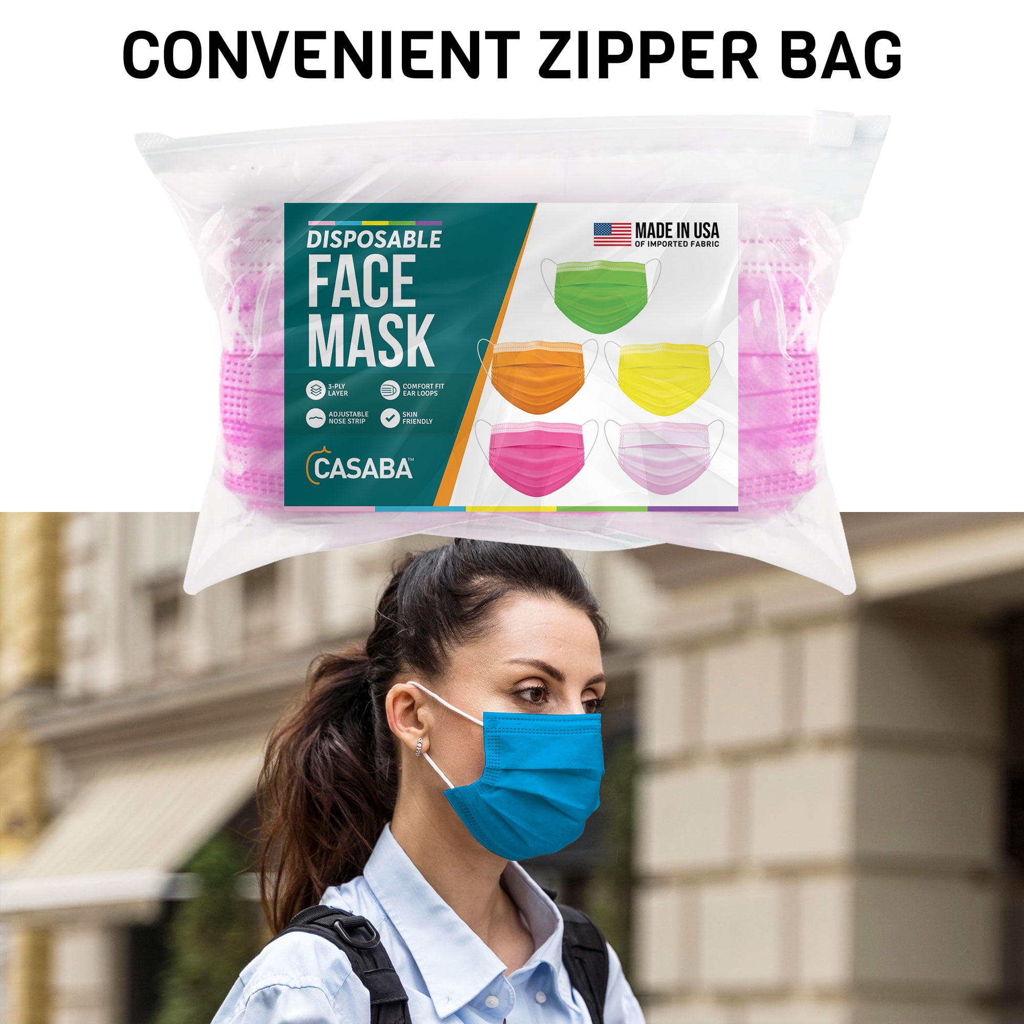 Casaba 50 Pack Multi-Color Disposable Face Masks 3-Ply Filter – Made in USA with Imported Fabric