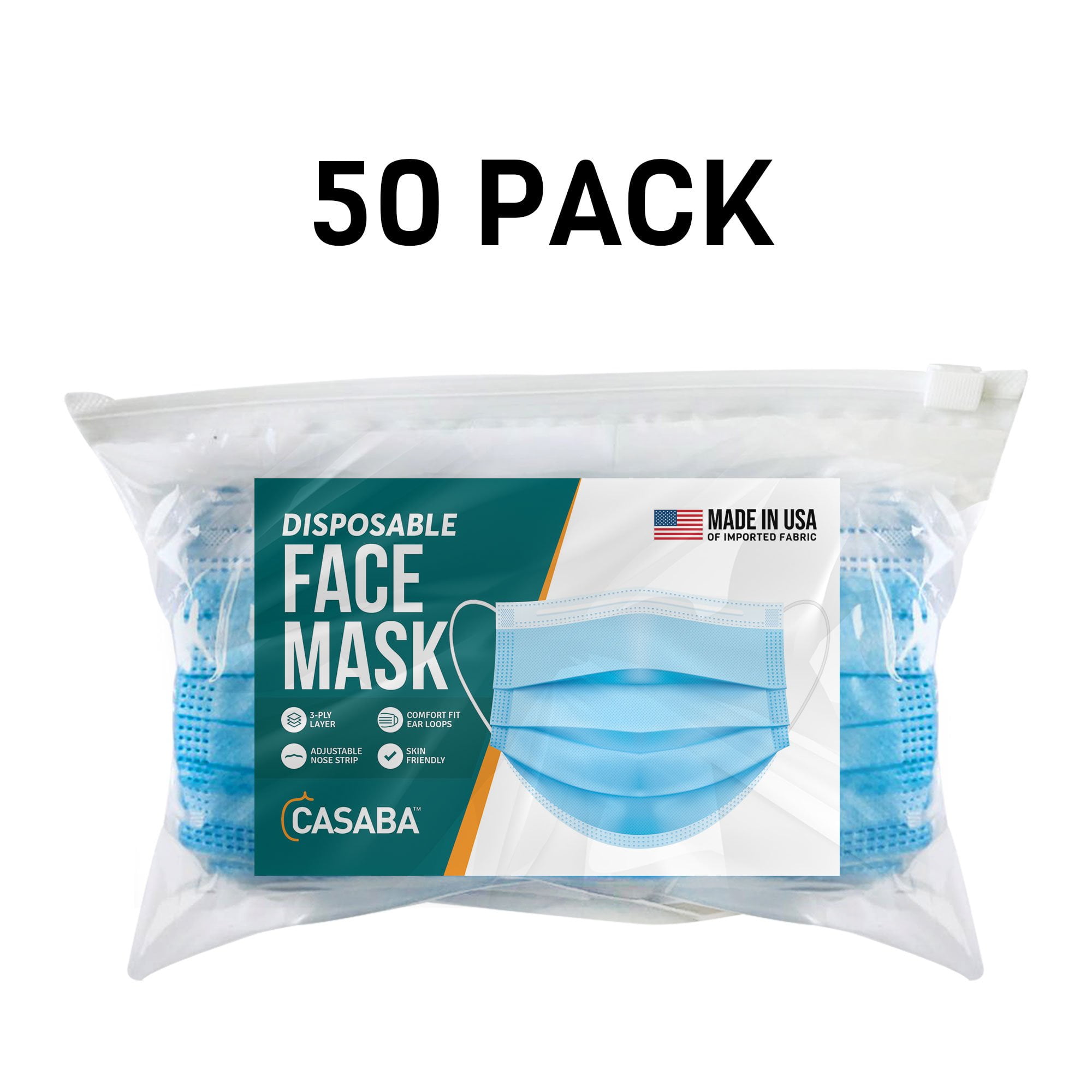 Casaba 50 Pack Multi-Color Disposable Face Masks 3-Ply Filter – Made in USA with Imported Fabric