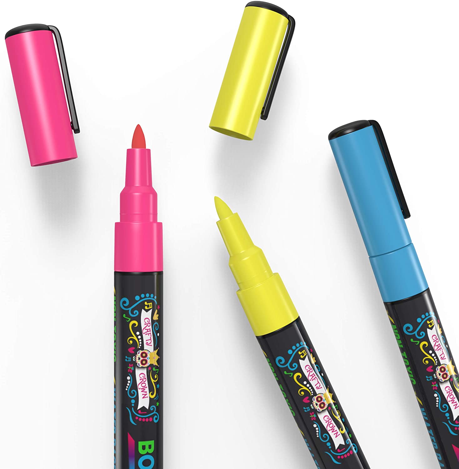 These Bold Chalk Markers are water-based and have a reversible tip. So, they are washable, reusable and safe to use while keeping their incredible vibrant colors. Chalky Crown Liquid Chalk Markers – Dry Erase Marker Pens – For Chalkboards, Signs, Windows, Blackboard, Glass – Reversible Tip (8 Pack) – 24 Chalkboard Labels Included (Multicolored, 1 mm).