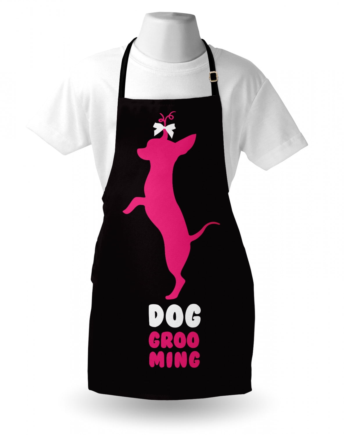 Chihuahua Apron, Dog Grooming Typography and Puppy Standing with Funny Hair Bow, Unisex Kitchen Bib with Adjustable Neck for Cooking Gardening, Adult Size, Charcoal Grey, by Ambesonne
