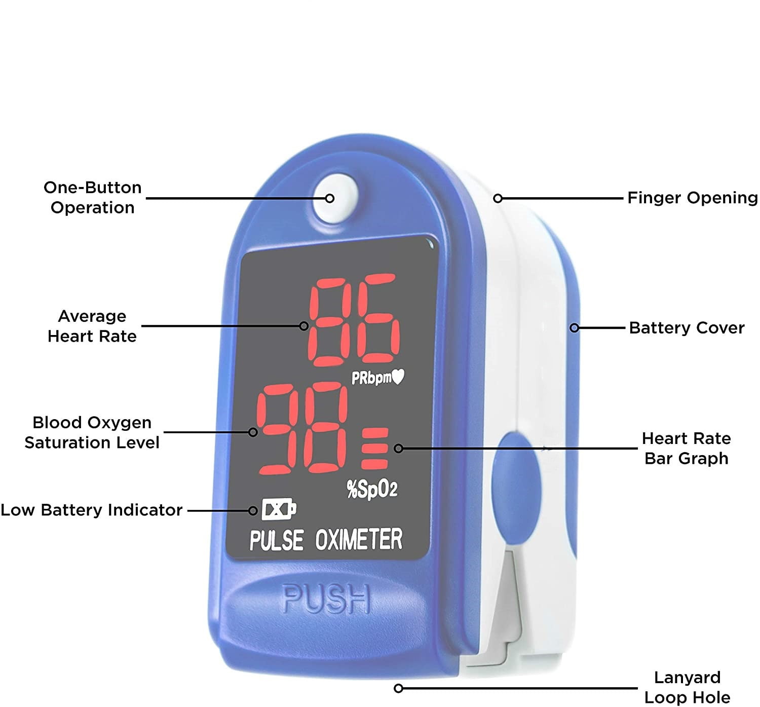 The Concord digital fingertip pulse oximeter uses advanced technology to monitor SpO2 (blood oxygen) – and heart pulse rate (PR) via a large bright OLED display which allows you to read in the dark or bright light. It can switch to face any of 4 directions with the push of a button. Waverform is also displayed. It runs up to 30 hours on a single set of AAA batteries and shuts off automatically after eight seconds to avoid unnecessary draining. It has a low battery indicator so you can replace the batteries ahead of time.