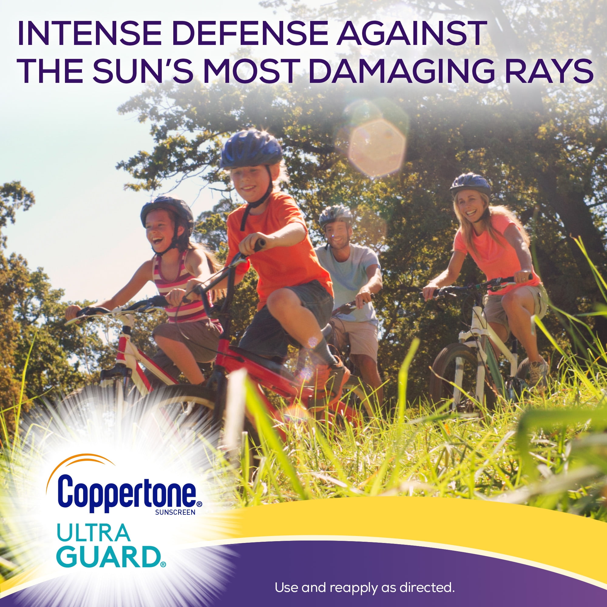 Stop up to 98% of damaging UV rays with Coppertone ULTRA GUARD Sunscreen Lotion. Protect your skin while in the sun with this broad-spectrum formula. Delivering water-resistant (80 minutes) UVA/UVB protection for, this sunscreen doesn’t feel greasy on your skin. Nourish and hydrate your skin with moisturizers and Vitamin E. Apply whenever your day takes you outside, whether it’s a picnic at the park, catching the big game, or working out in the yard. This pack includes one 8-fluid-ounce SPF 50 sunscreen lotion bottle.
