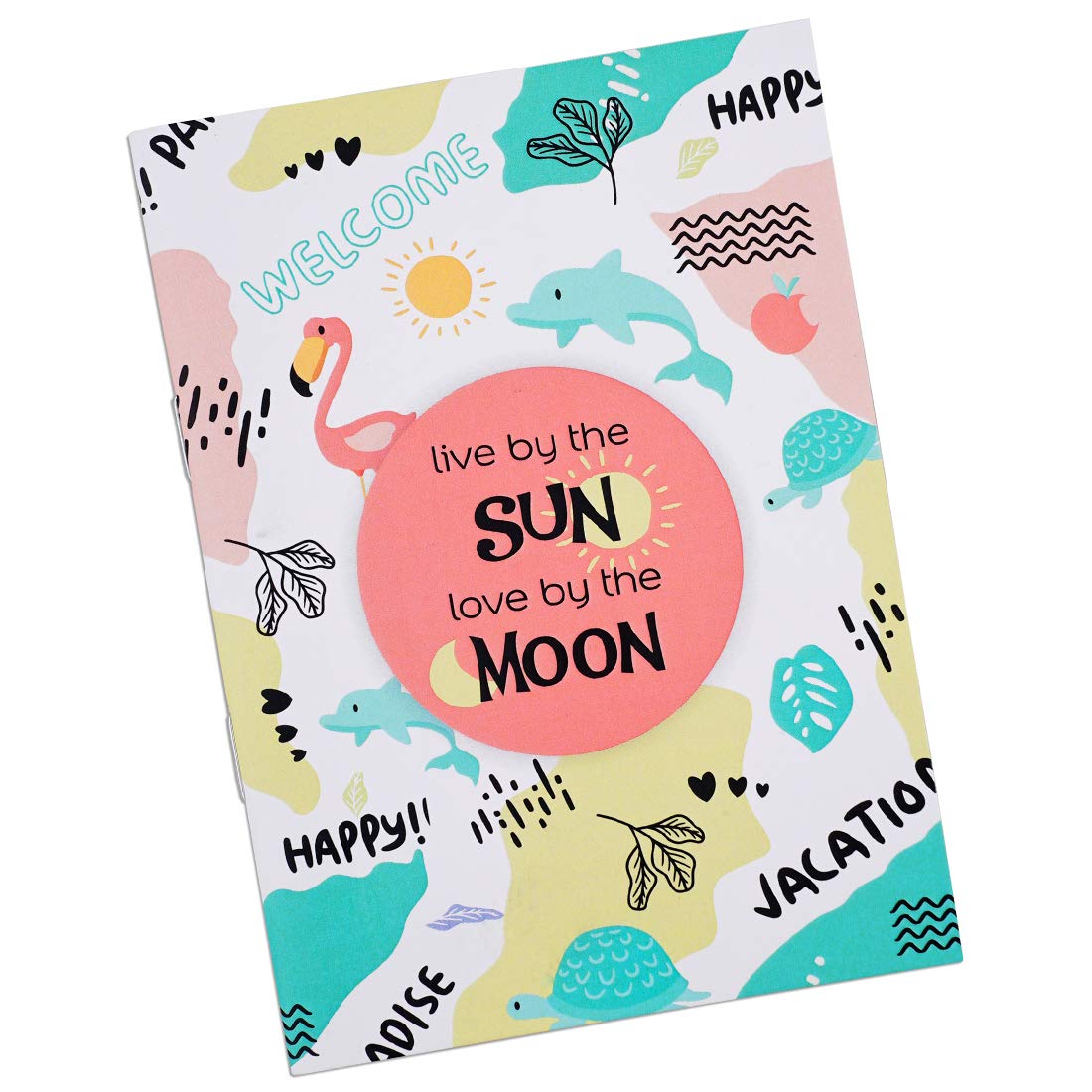 The pattern is fresh and natural The notebook is exquisite and compact, easy to carry The rounded corners are designed to avoid hurting hands and curling. ribbon for bookmarks, easy to find Cover: paper + high-grade artificial leather Inside page: 100g premium white leather Specification: 11cm*14.5cm*1.5cm Number of pages: 96 sheets/192 pages