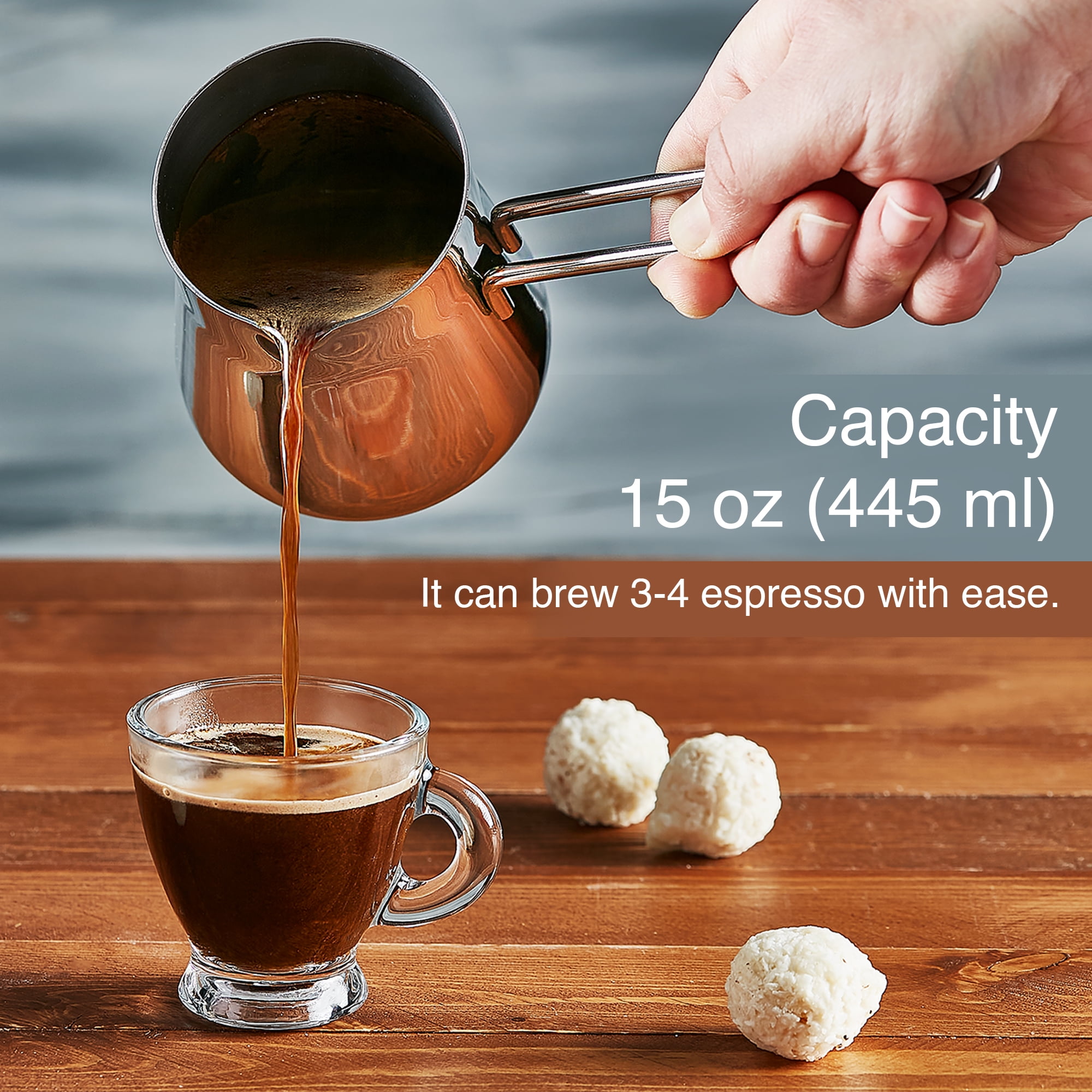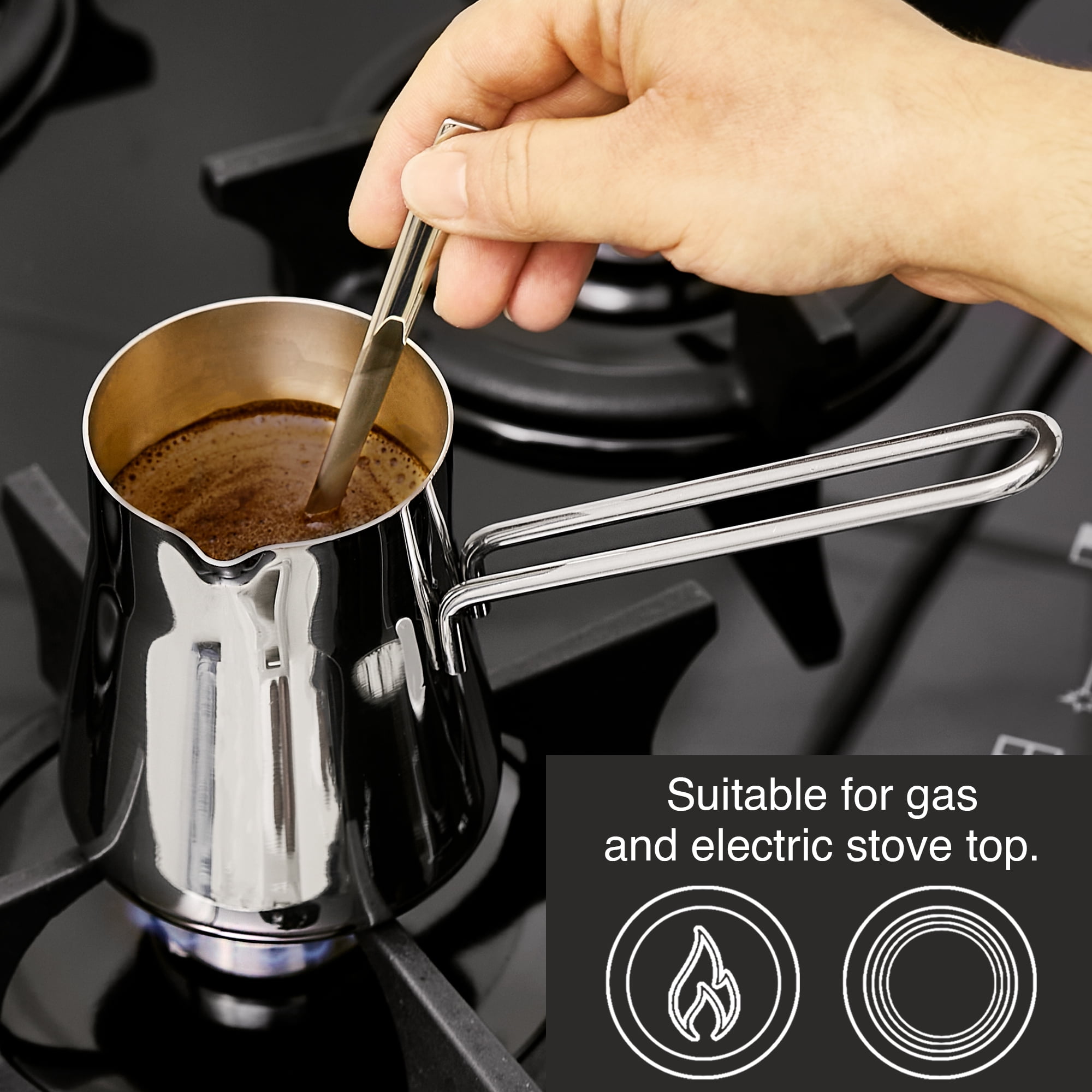 CRYSTALIA Turkish Coffee Pot 18/10 Stainless Steel, Stove Top Tea Maker, Milk Warmer, Greek Arabic Coffee Cezve Briki for Cooking, Chocolate Heater, Butter Melting Cup, 15 oz Coffee Server