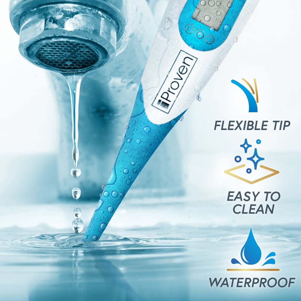 Oral, rectal or underarm use. Fast response. Sound signal. It stores the last temperature. Automatic shut off.Digital Thermometer with Automatic Alarm (Not Waterproof)