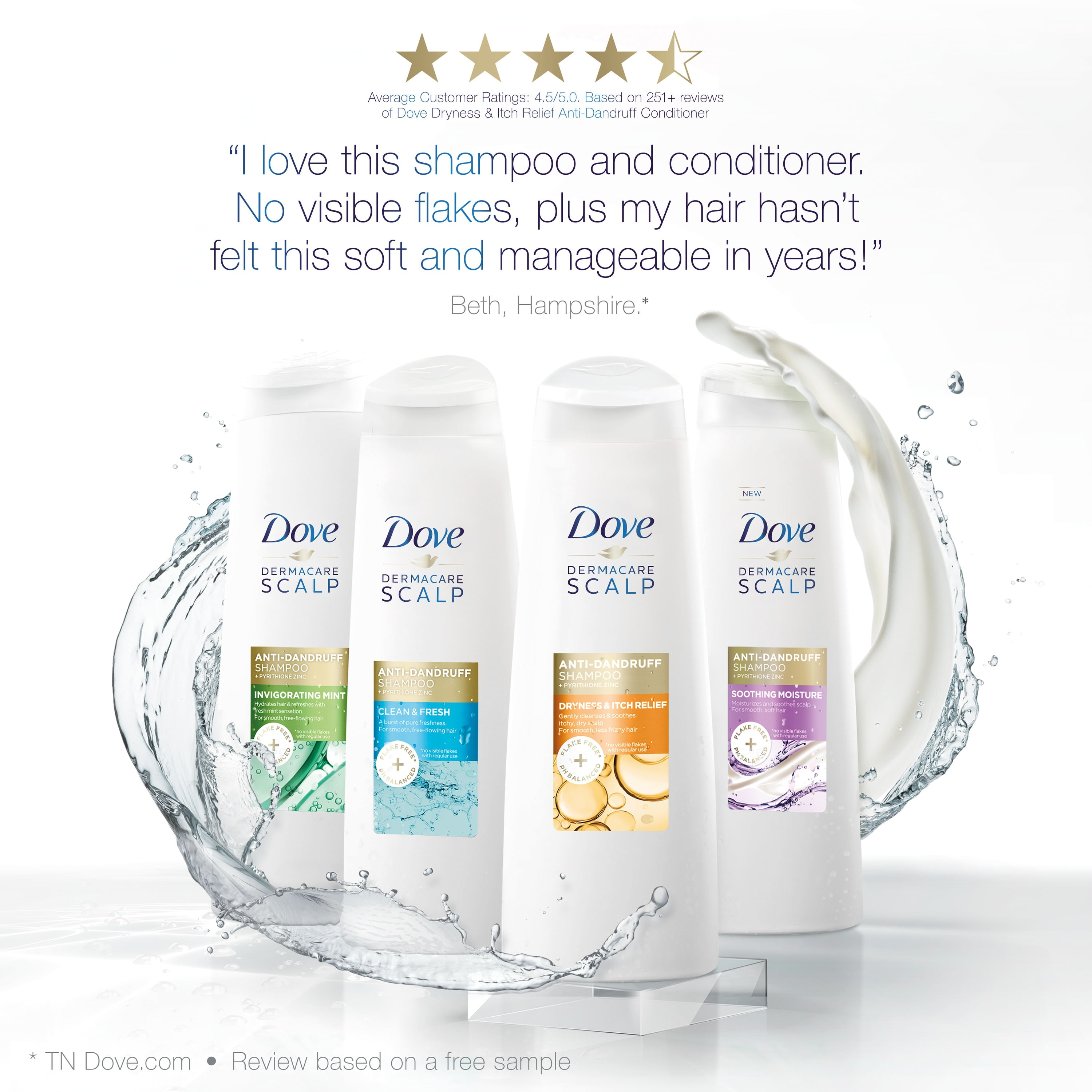 - New Dove DermaCare Scalp Coconut and Hydration Shampoo for itchy, flaky scalp