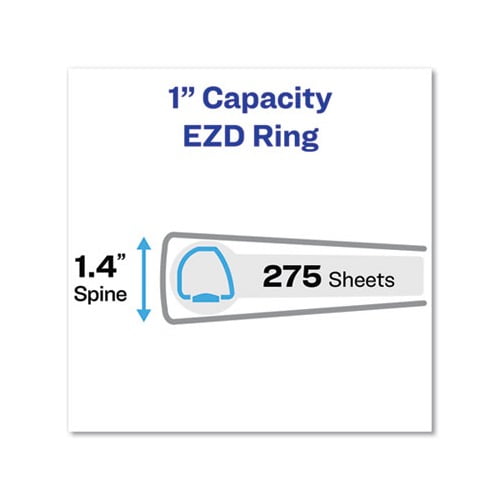 Organize paperwork quickly and easily with these Durable Binders. Tear-resistant DuraHinge design is stronger and lasts longer. DuraEdge feature makes the sides and top more pliable, providing greater split resistance. Deeply textured film offers a smoother finish and features a linen pattern for a high-quality look and feel. EZD rings provide an increased capacity when compared to the same size slant or round rings. Pages lie flat with back-mounted rings exposed rivets on back. Organize and secure papers within four clear interior pockets. Reliability, strength and innovation make for a great organizational solution. Nonlocking Rings with Label HolderEasily identify contents with label holder. Binder Type: Ring Binder Style: Non-View Binder Size Capacity: 1" Binder Sheet Capacity: 275. Green : Contains a minimum of 44% post-consumer recycled content, 44% total recycled content.