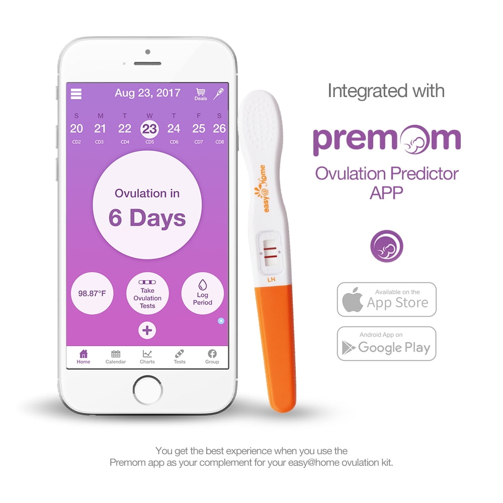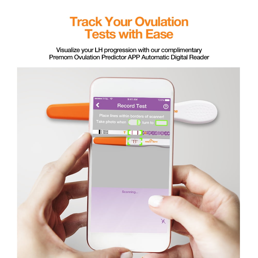 Easy@Home 25 Ovulation Predictor Kit Test Sticks, Midstream Fertility Tests, Powered by Premom Ovulation Predictor App and Period Tracking Free iOS and Android App, 25 LH Tests