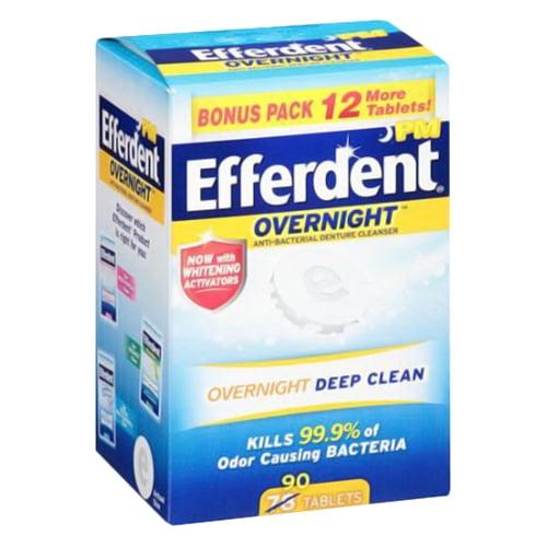 Efferdent PM Overnight Anti-Bacterial Denture Cleanser Tablets – 90 ea, 2 Pack