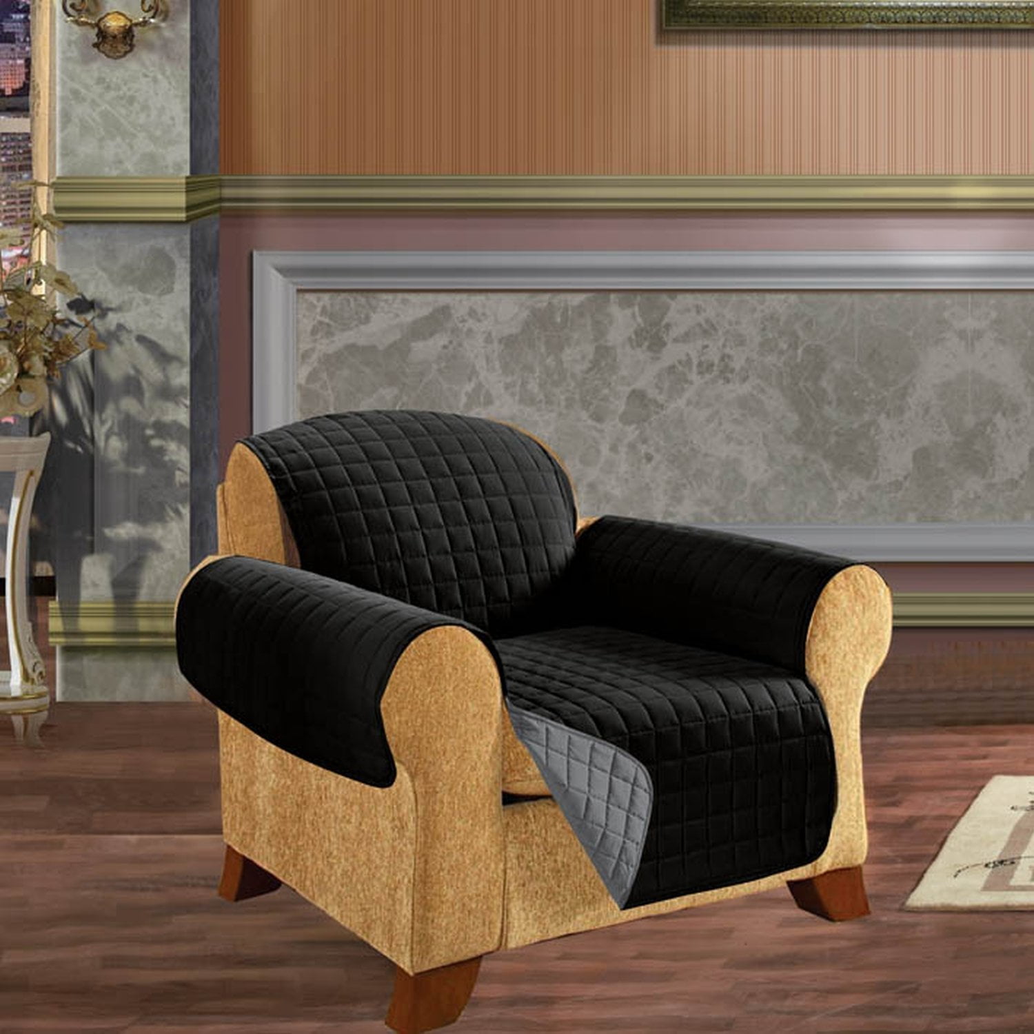 Elegant Comfort QUILTED REVERSIBLE FURNITURE PROTECTOR for Pet Dog Children Kids -2 TIES TO STOP SLIPPING OFF Treatment Microfiber As soft as Egyptian Cotton Black/Gray Chair