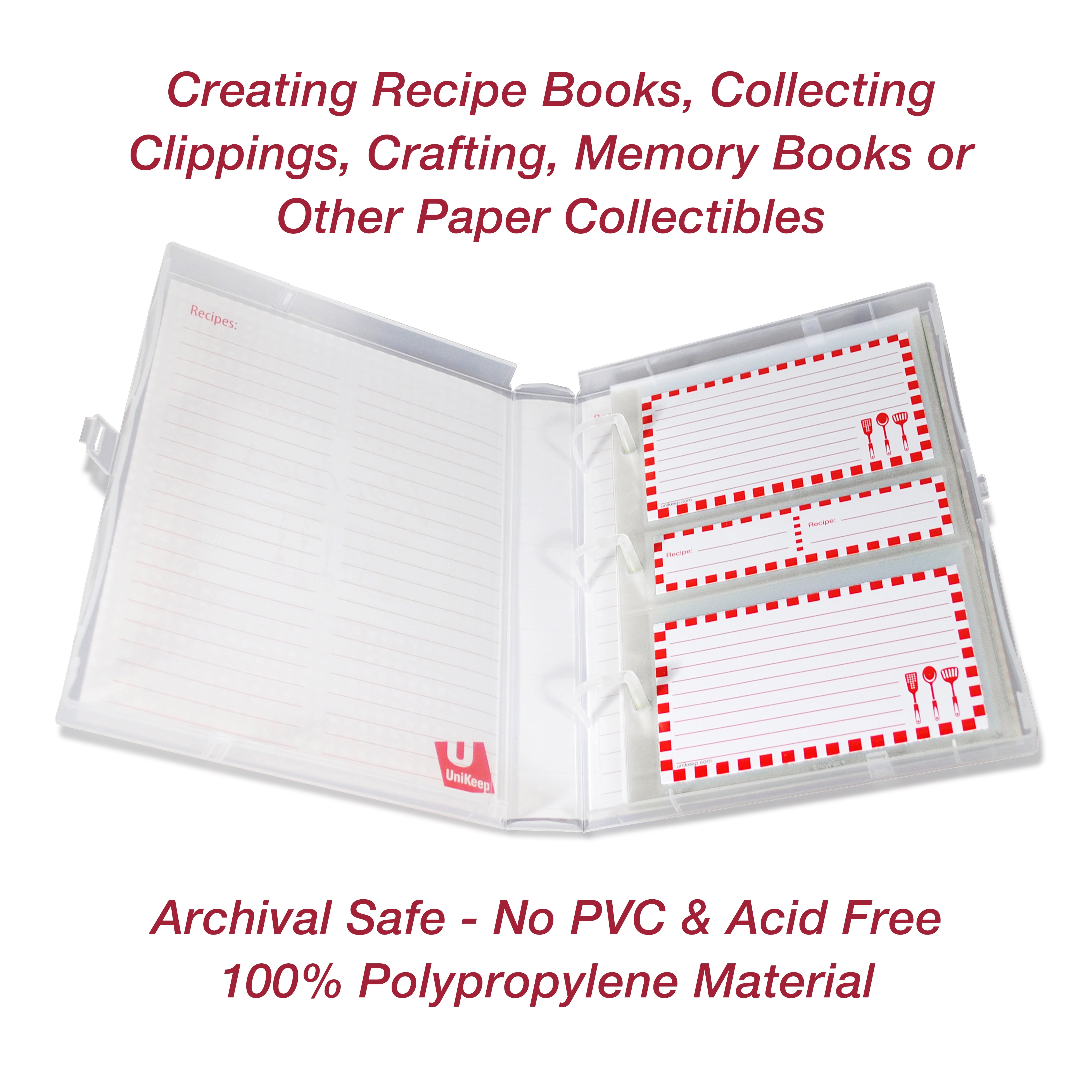 - ACID FREE & ARCHIVAL SAFE FOR LONG LASTING PROTECTION – 100% recyclable polypropylene. These sheet protectors won’t lift or smear ink from your printed pages or pictures. These pages include a small pocket between the two card pockets where you can slip in a special note or memory about a particular recipe or card.