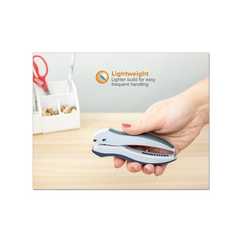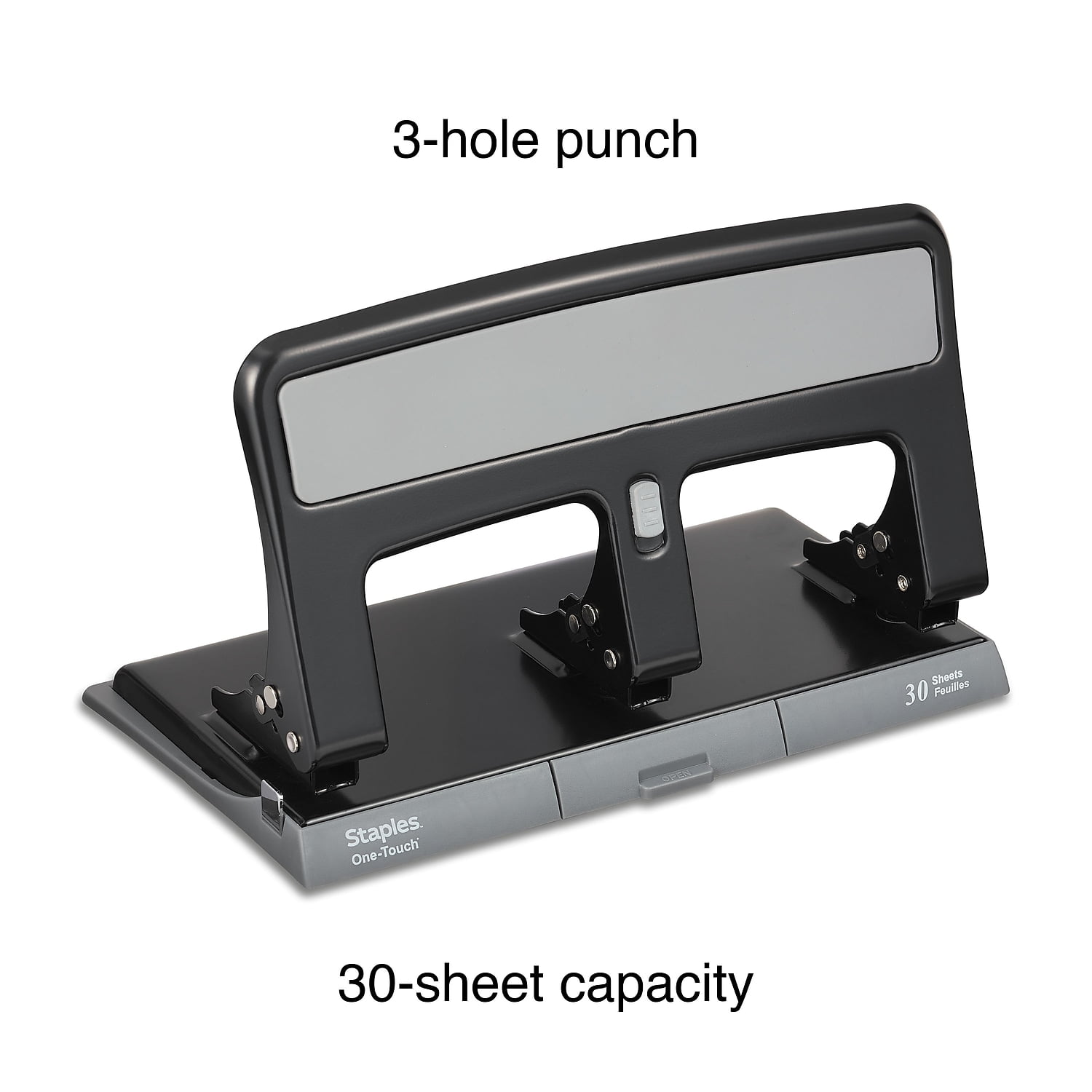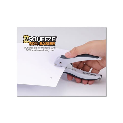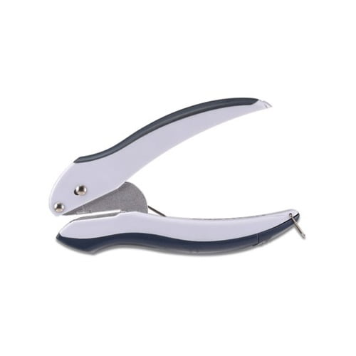 Jam-free and 50% easier to use. Cleanly and easily slice through 10 sheets with ProPunch paper-punch technology. Made for frequent handling, the smooth, ergonomic, non-slip-grip handle is designed to fit comfortably in the curve of your hand. Clever in-handle chip-collection compartment has an easy-open door for mess-free disposal. Handle locks closed for compact storage. Sheet Capacity: 10 Operating Method: Manual Number of Holes: 1 Hole Diameter: 1/4".