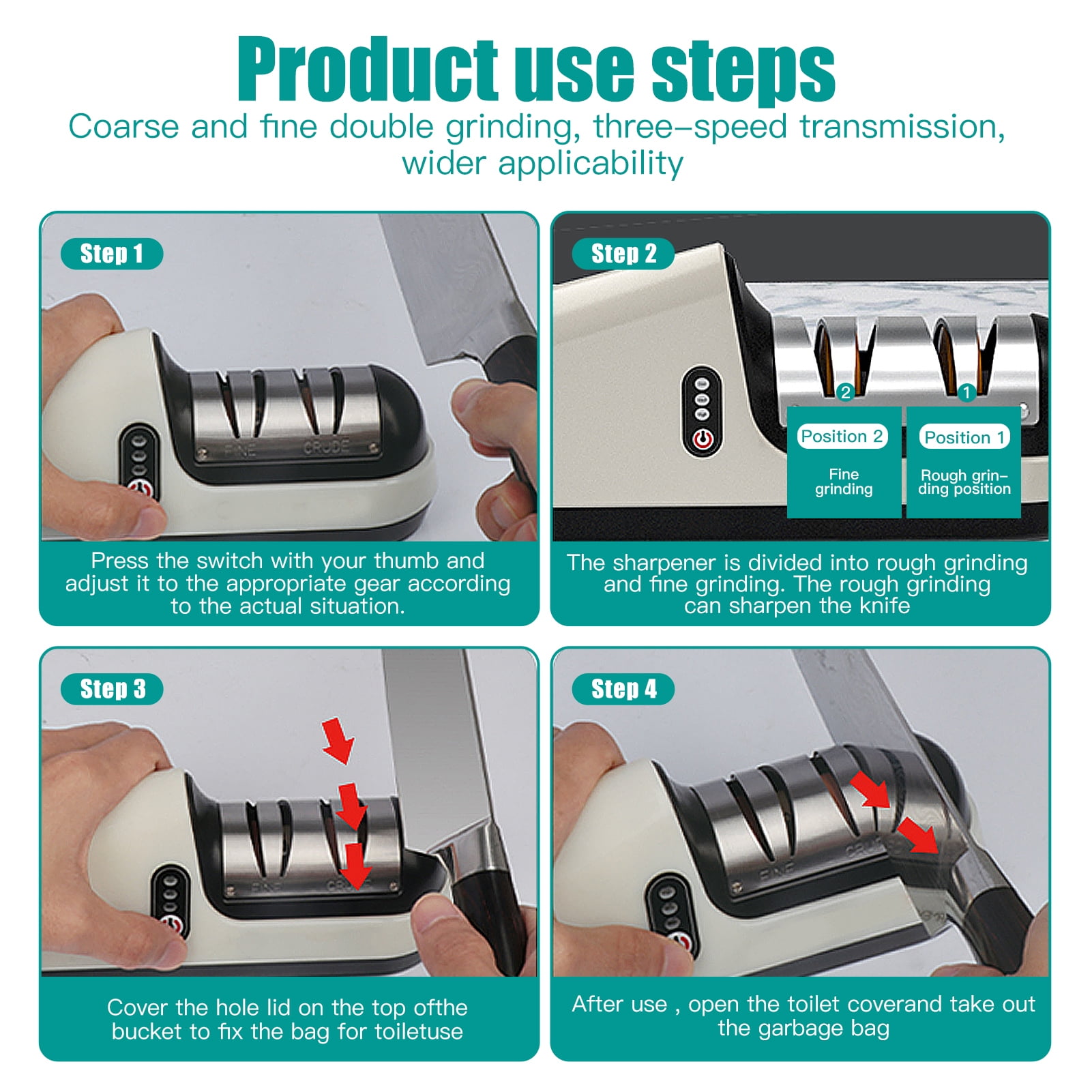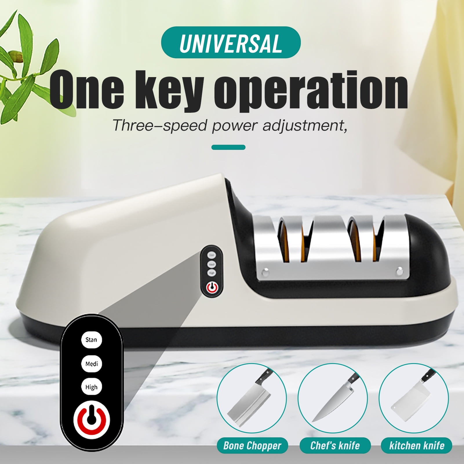 Grinding wheel assembly adopts the precision grinding bearing, the operation is more stable and smooth, and the service life is longer. - Three-speed transmission has wider applicability, which can meet the needs of more tools, such as: bone chopper, chopper, multi-purpose knife, chef’s knife, fruit knife, kitchen knife and so on.