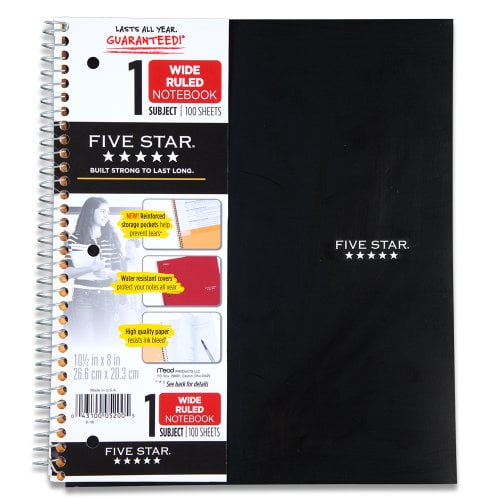 Five Star 1-Subject Notebook 8.5′ x 11′ College Ruled, 100 Sheets 256511, 1 Ea
