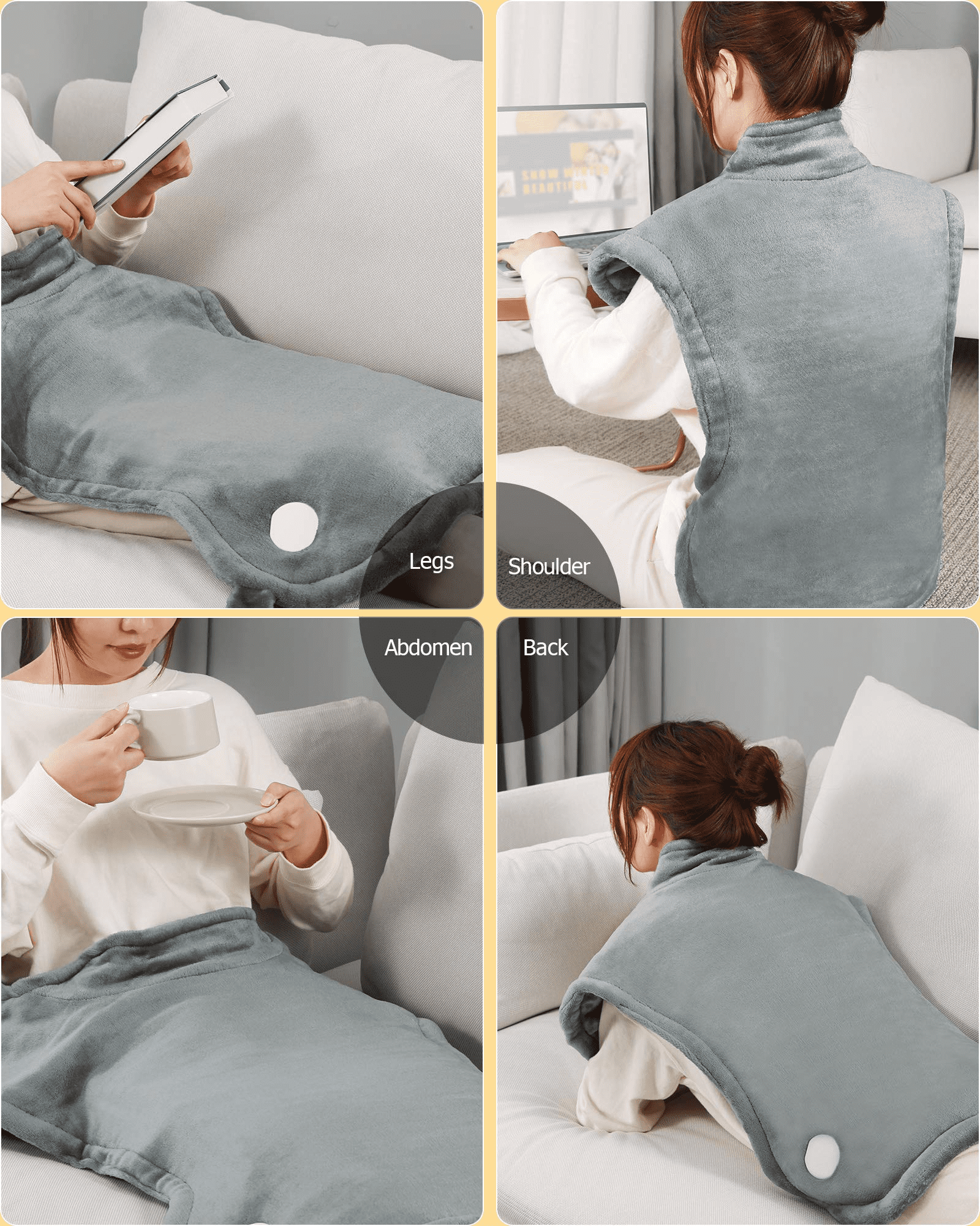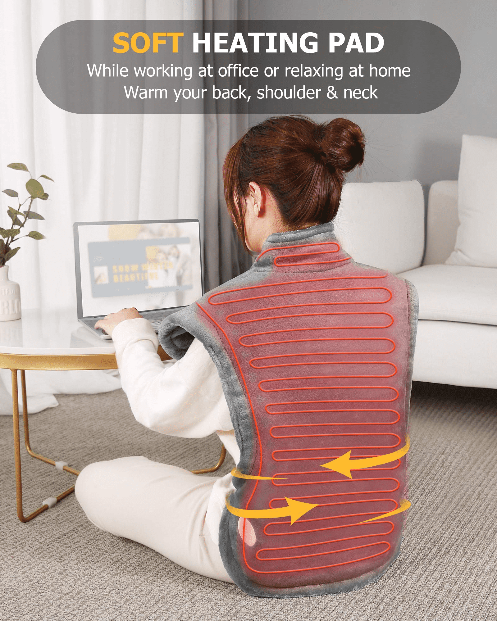 【Large & Full-body Relaxation】The wrap heating pad (24” x 33”) delivers penetrating heat to large body areas simultaneously to simply keep you warm in cold days; Designed specially to be worn around back neck and shoulders.