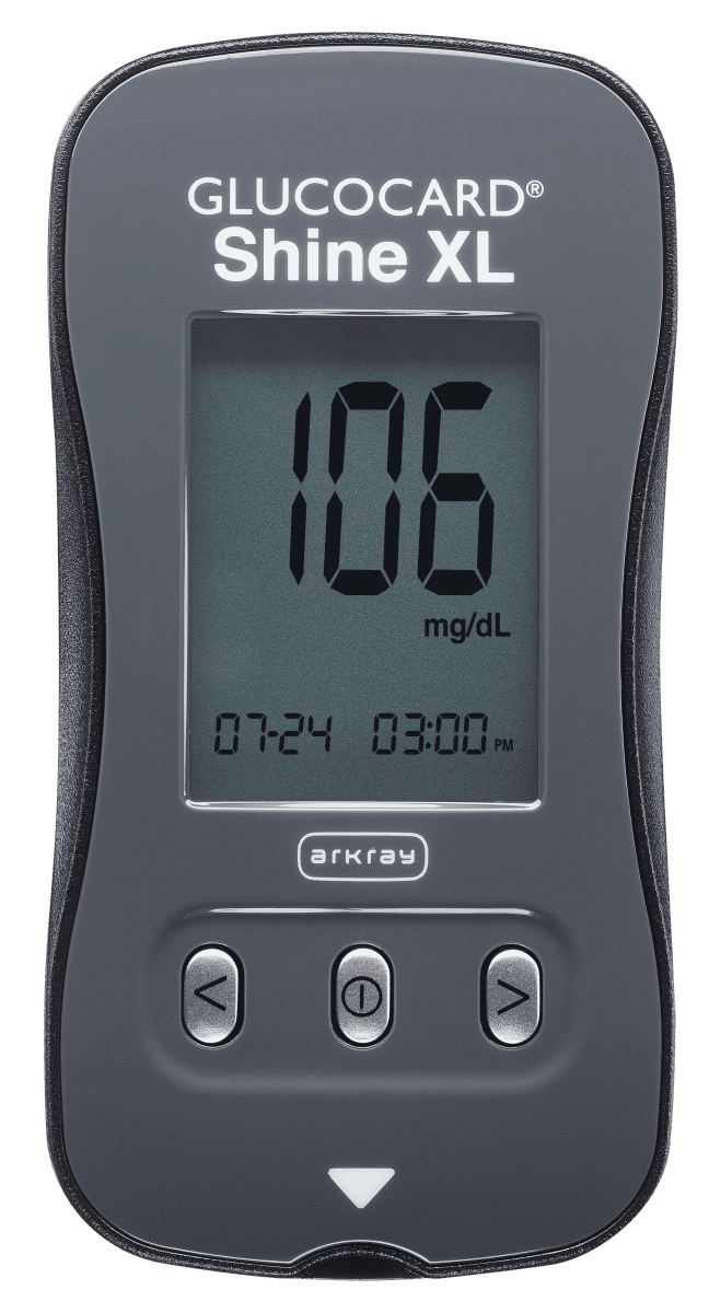 Large LED Screen: Facilitates quick and easy viewing of blood glucose test resultsErgonomic Design: Engineered to provide a secure grip for users with dexterity issuesGlucocard Shine XL Blood Glucose Monitoring System Kit