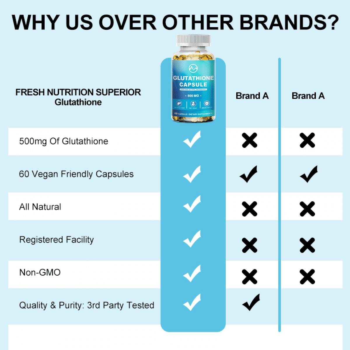 - Vegan Friendly, Non-Gmo, Gluten Free, Soy Free, No Artificial Flavors or Colors, No Preservatives, All Natural Ingredients! Our Glutathione Supplement is suitable for anybody on any diet or nutrition protocol who wants to add this to their regime we have ticked all the boxes on this one.