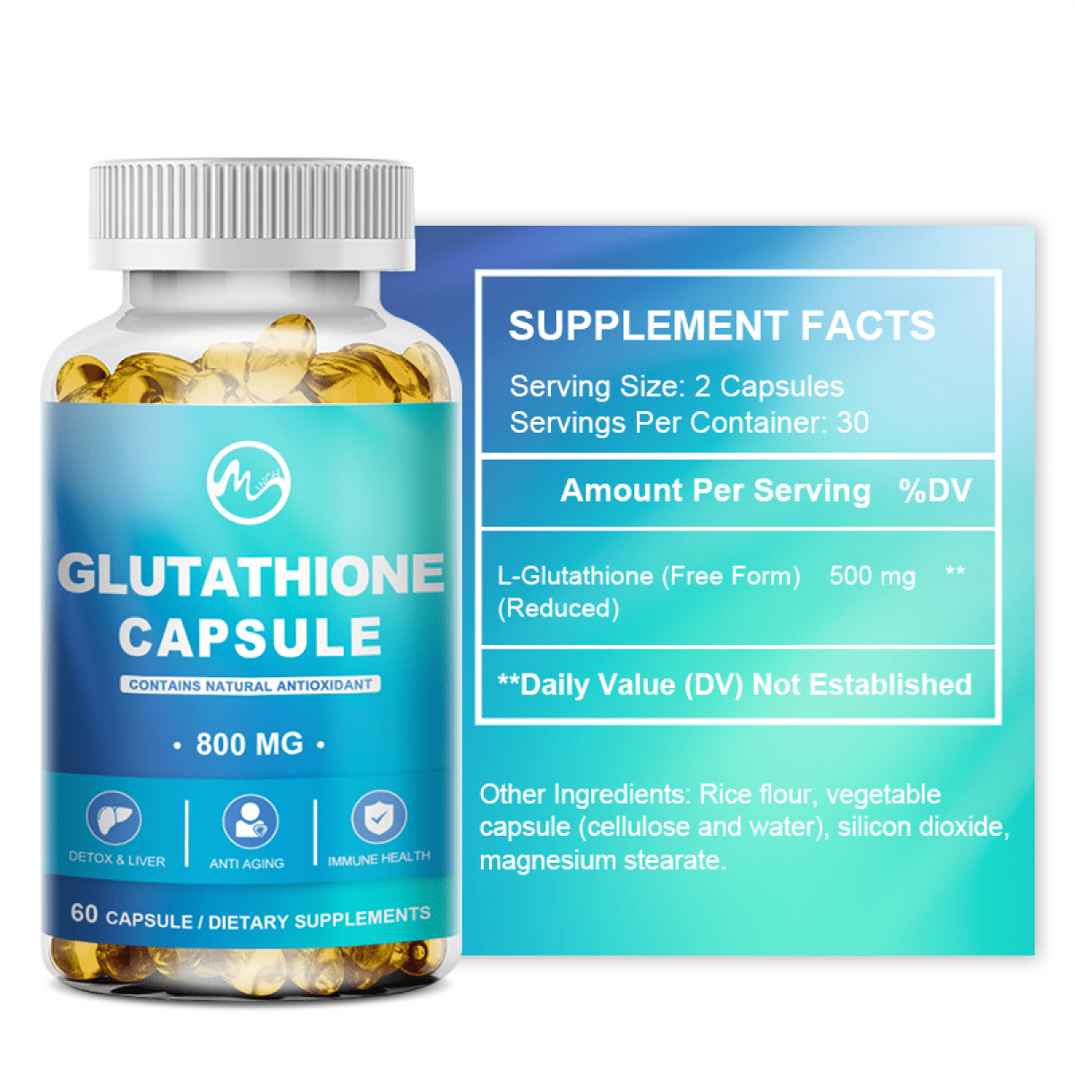 - How Much Do You Get In Each Bottle? Each bottle contains 60 capsules of Glutathione (Reduced Form) providing a dose of 800mg pure DNA verified Glutathione Reduced Form per serving. Each bottle lasts one month at 2 capsules a day.