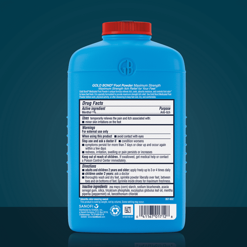 - Contains: One (1) 10-oz. bottle Maximum Strength Gold Bond Medicated Foot Powder for Odor Control & Itch Relief