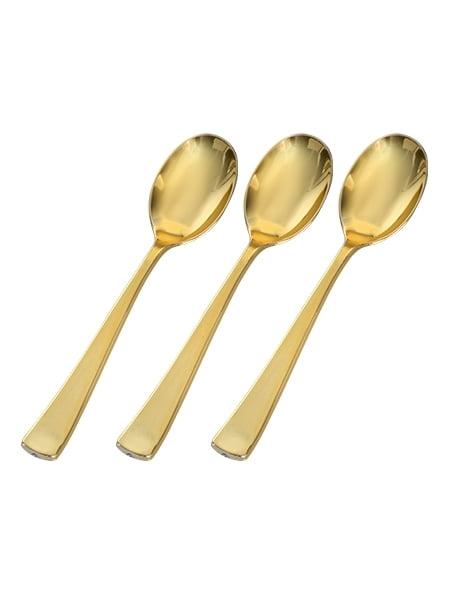 Taste is evident in its chic, modern, and stylish design. An upscale plastic gold flatware perfect for wedding receptions. The chic gold sheen gives the cutlery an elegant feel that is perfect for formal dinners, banquets, and dinner parties as well as everyday mealtime, picnics, and informal events.