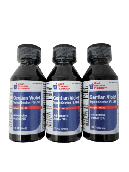 Good Neighbor Pharmacy Gentian Violet 1% 2 oz Bottle (Pack of 3)Gentian violet is an antiseptic dye used to treat fungal infections of the skin (such as ringworm, athlete’s foot). It may be used on minor cuts and scrapes to prevent infection.