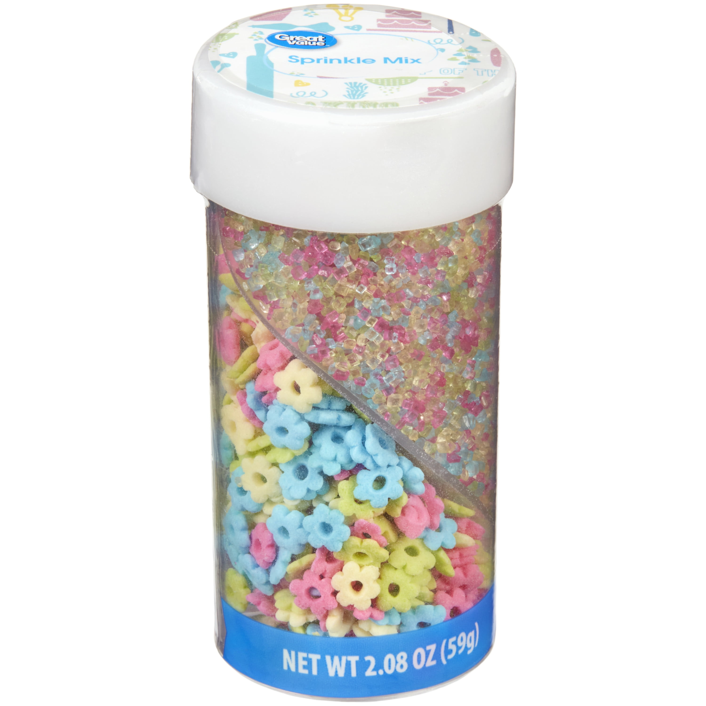 Decorate cupcakes in a flash for birthday parties and other celebrations. This unique twist sprinkle bottle includes colorful flower-shaped sprinkles and pink, blue, green and yellow sparkling sugars that you can mix and match to your heart’s content.