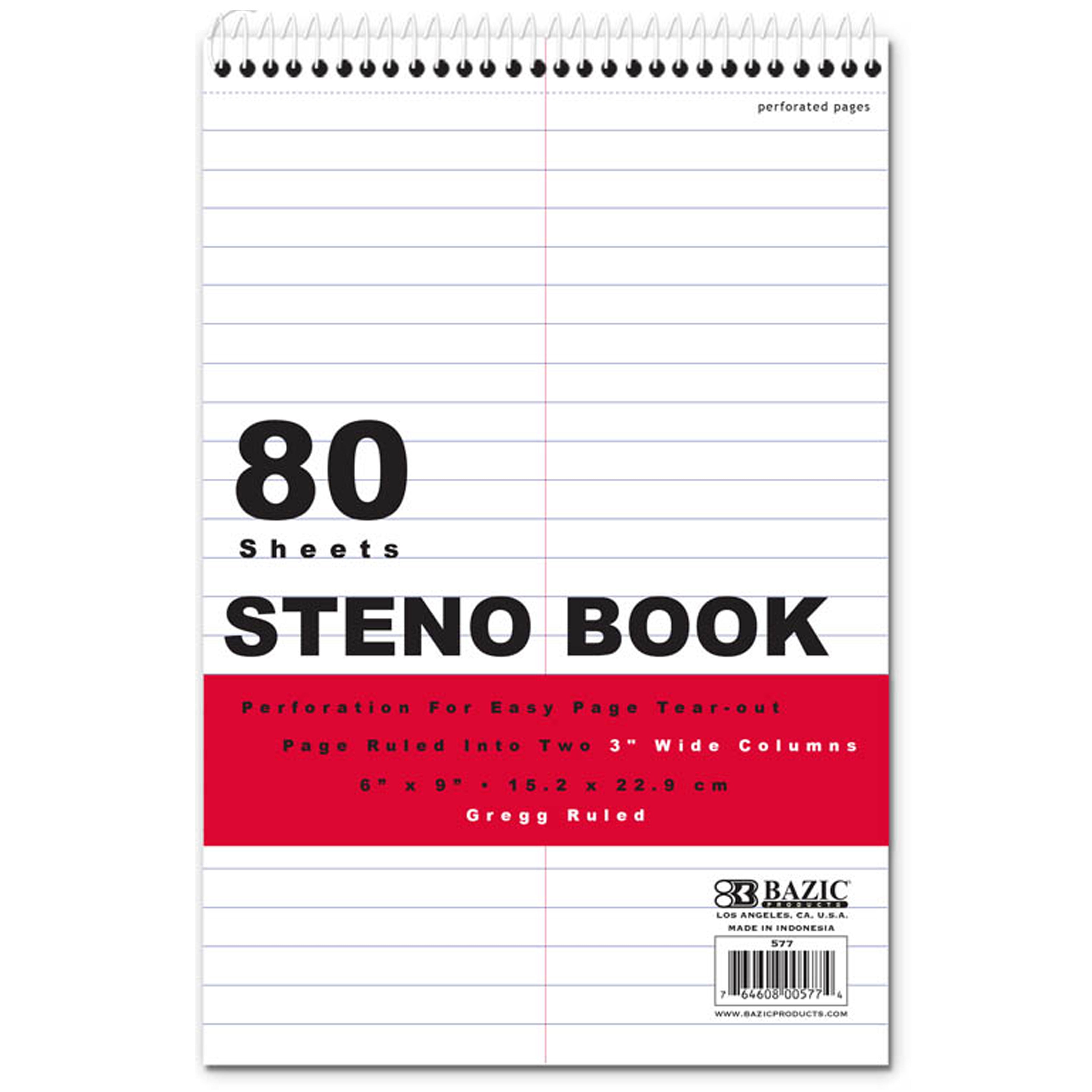 4 Steno Notebooks 6’X9′ White 80 Sheets Ea Notepad Gregg Ruled Perforated BAZIC