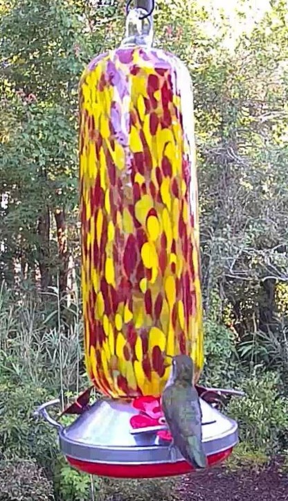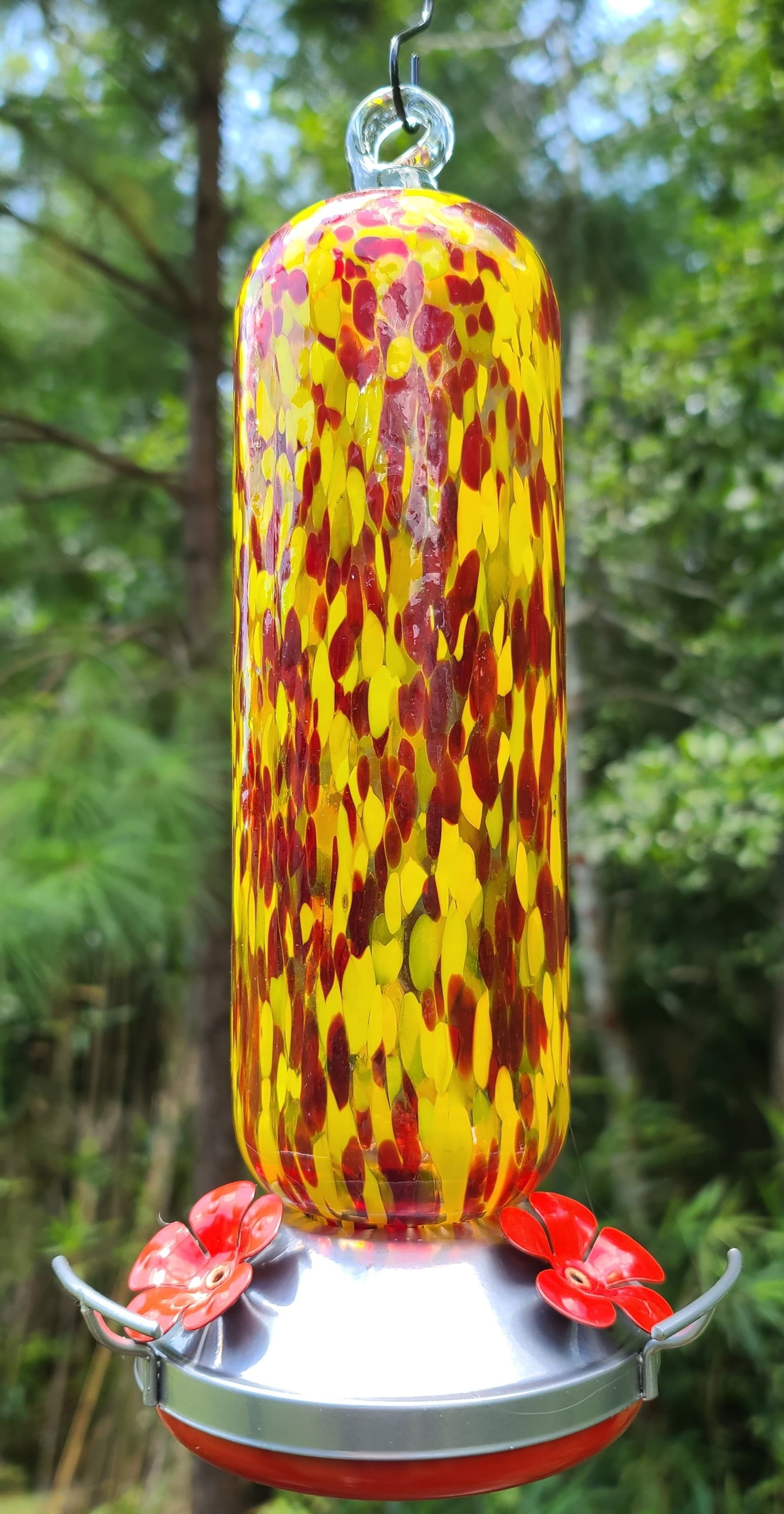 Griffin Products 29 oz. Red Hand-Blown Glass Hummingbird Feeder